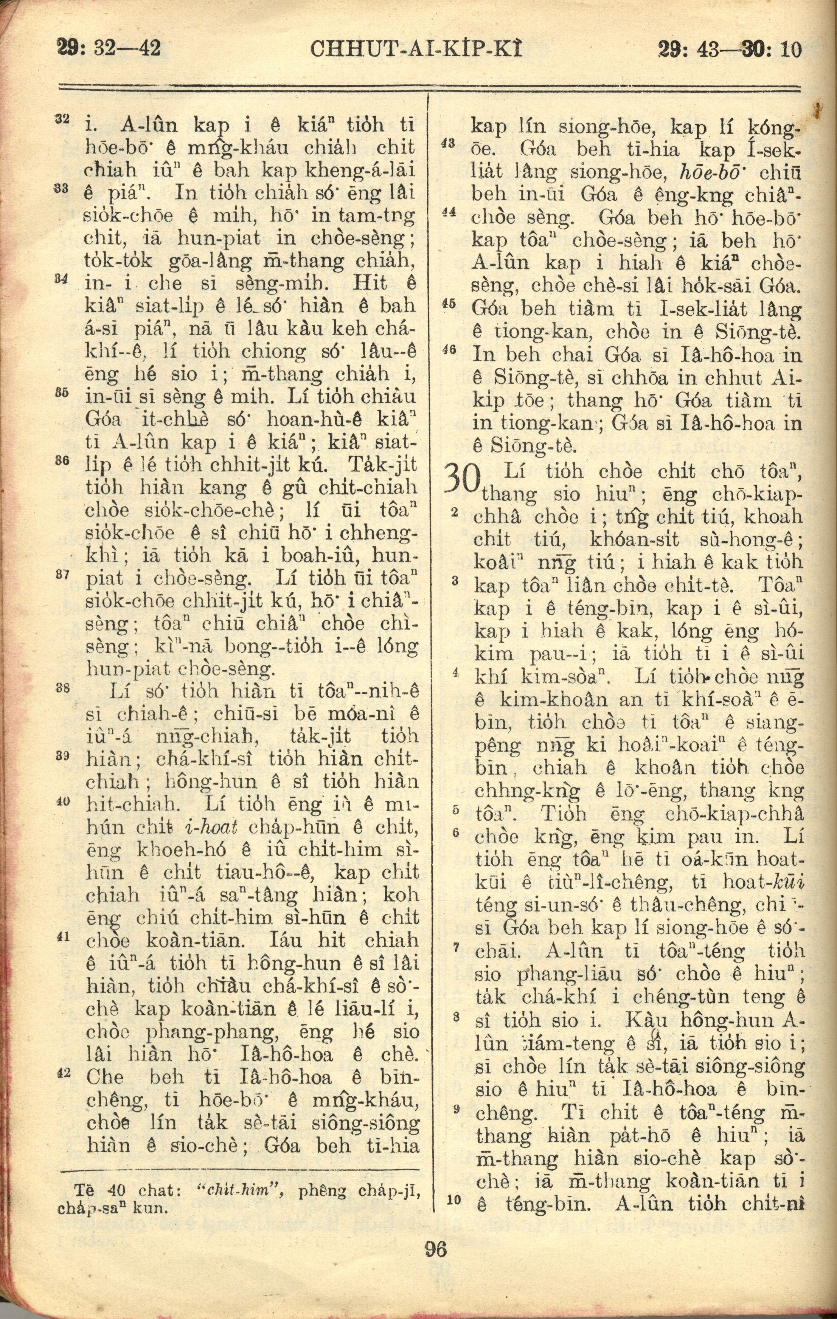 1957年巴克礼全罗台语圣经串珠版 出埃及记 29 章 32 节到 30 章 10 节