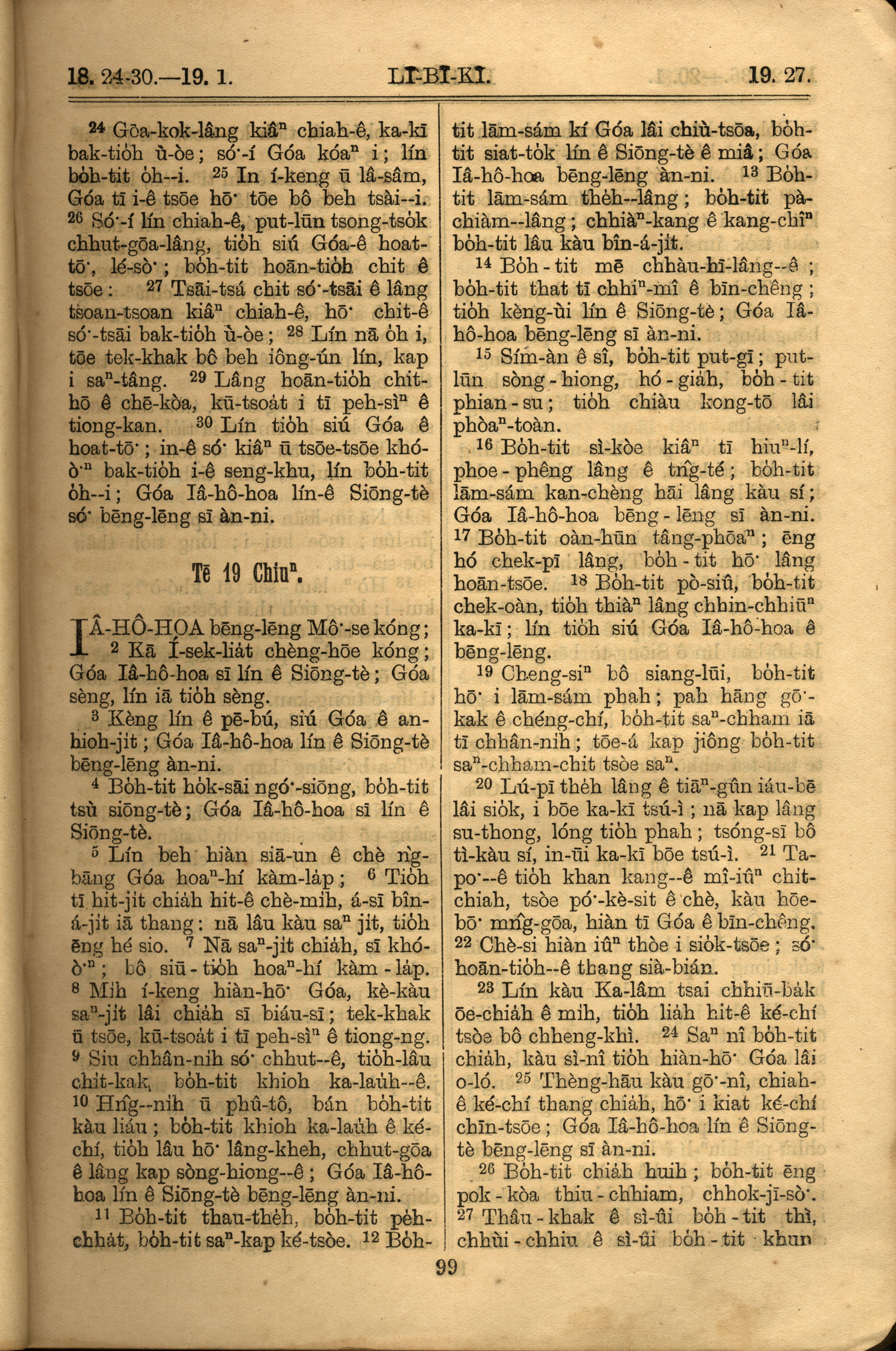 1921年罗马字旧约全书 利未记 18 章 24 节到 19 章 27 节