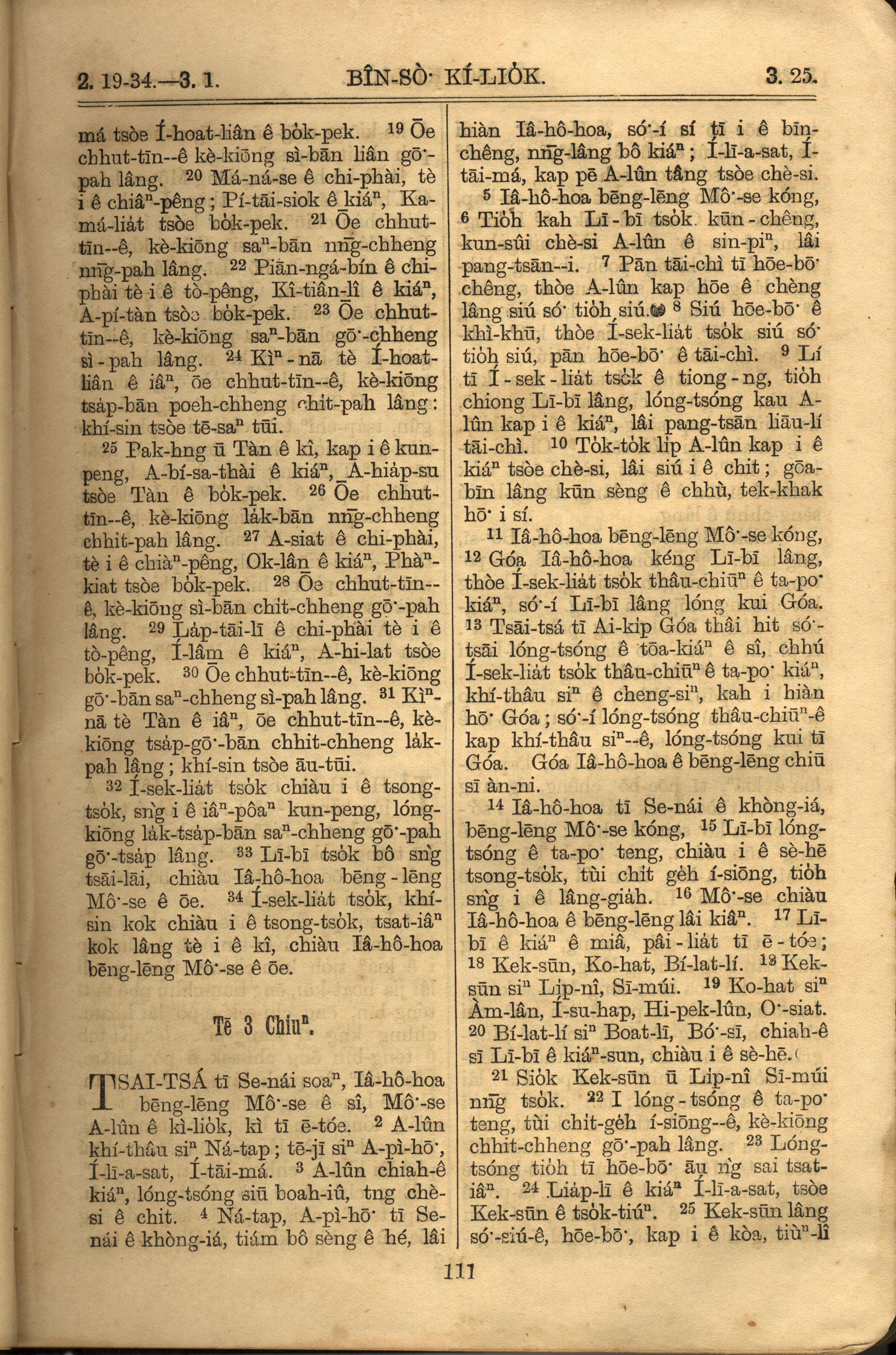 1921年罗马字旧约全书 民数记 2 章 19 节到 3 章 25 节