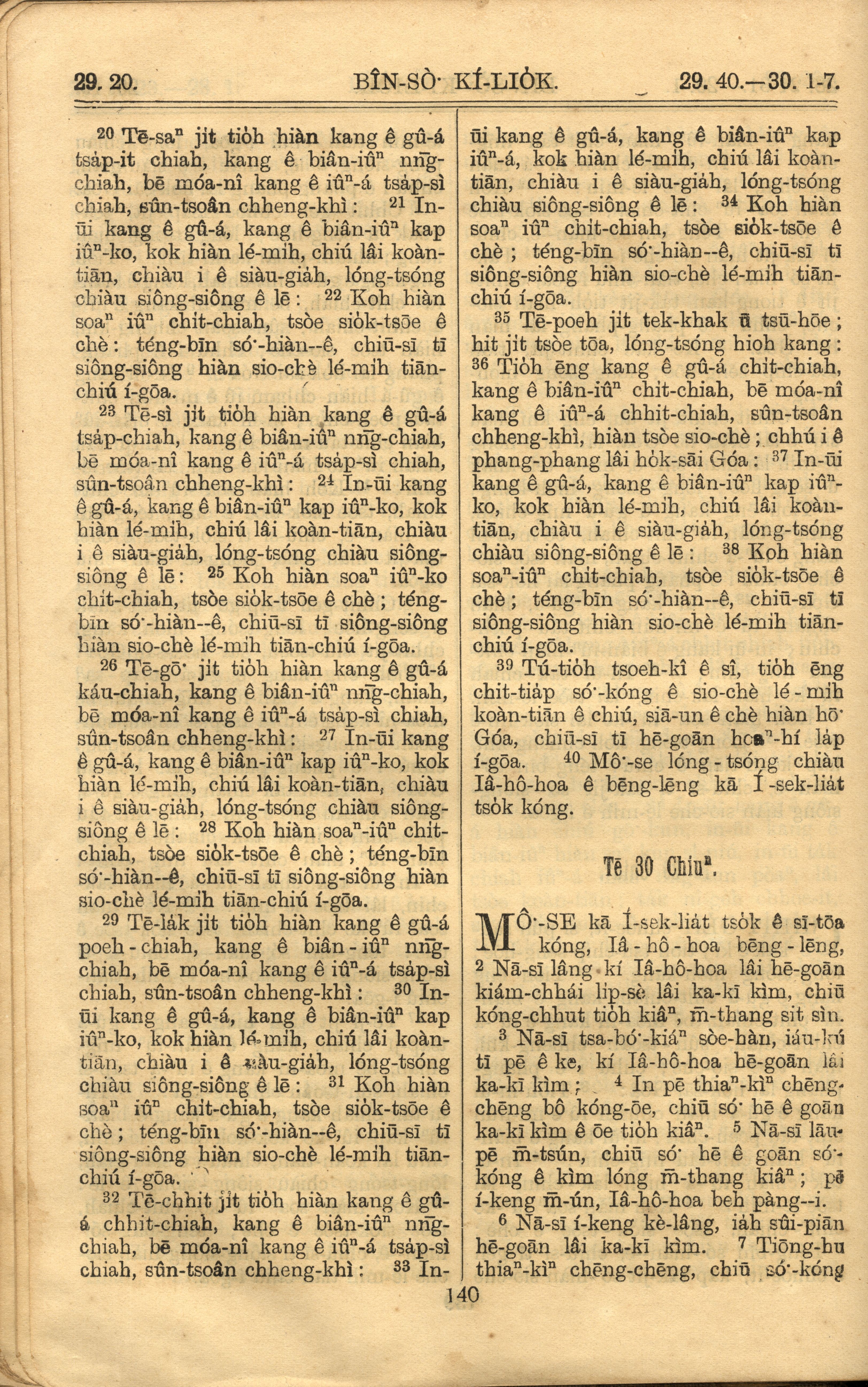 1921年罗马字旧约全书 民数记 29 章 20 节到 30 章 7 节