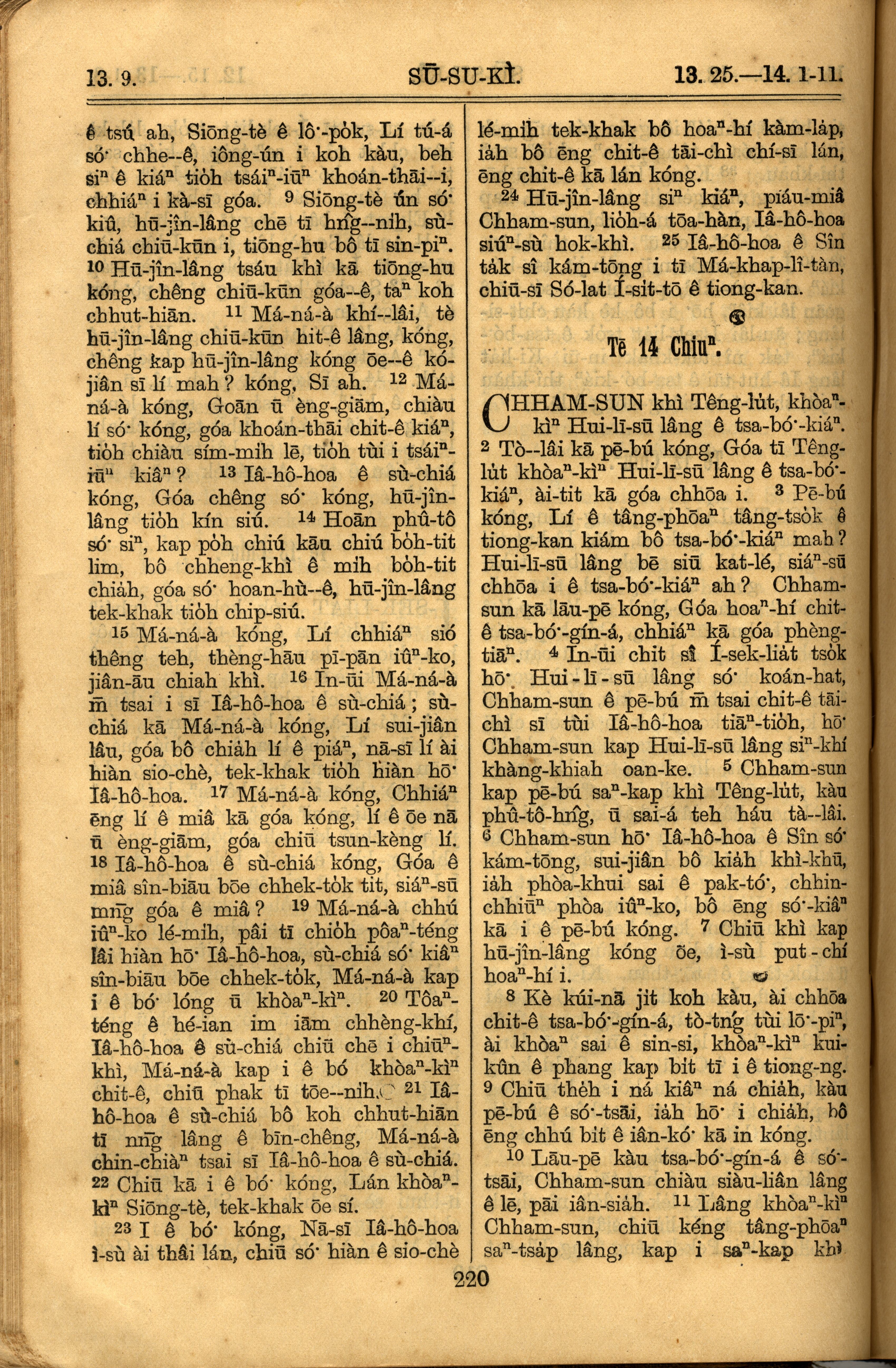 1921年罗马字旧约全书 士师记 13 章 9 节到 14 章 11 节