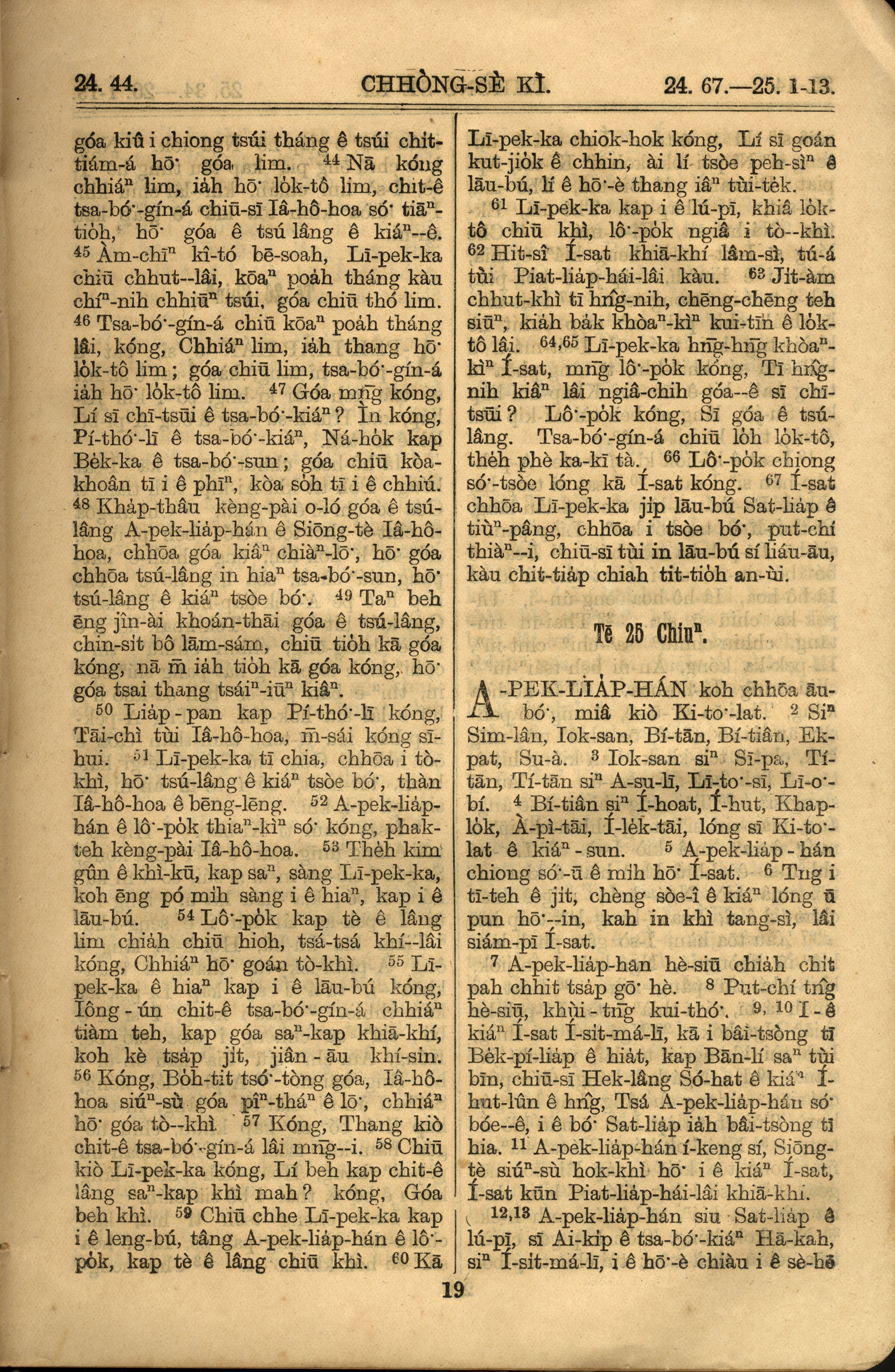 1921年罗马字旧约全书 创世记 24 章 44 节到 25 章 13 节