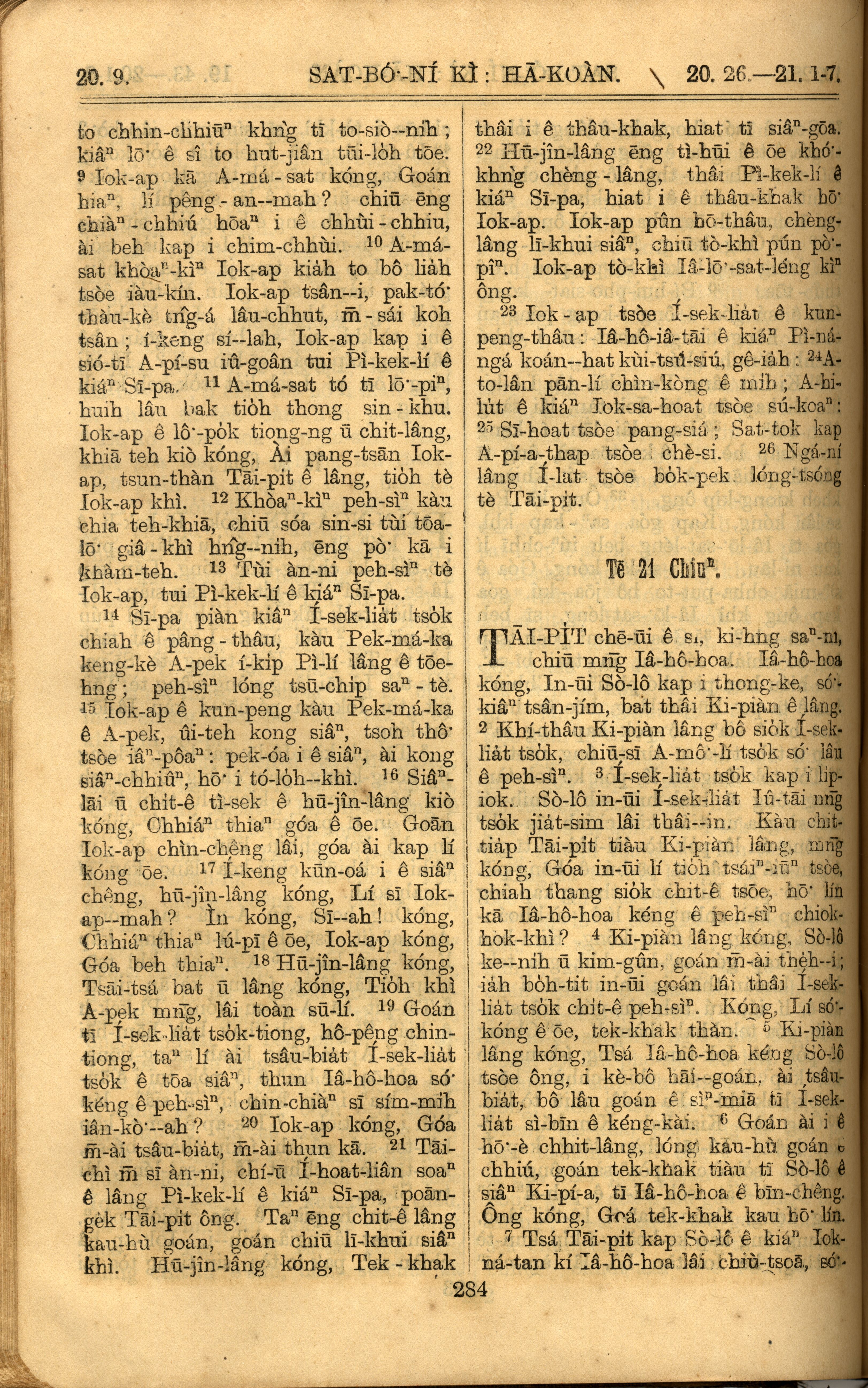 1921年罗马字旧约全书 撒母耳记下 20 章 9 节到 21 章 7 节