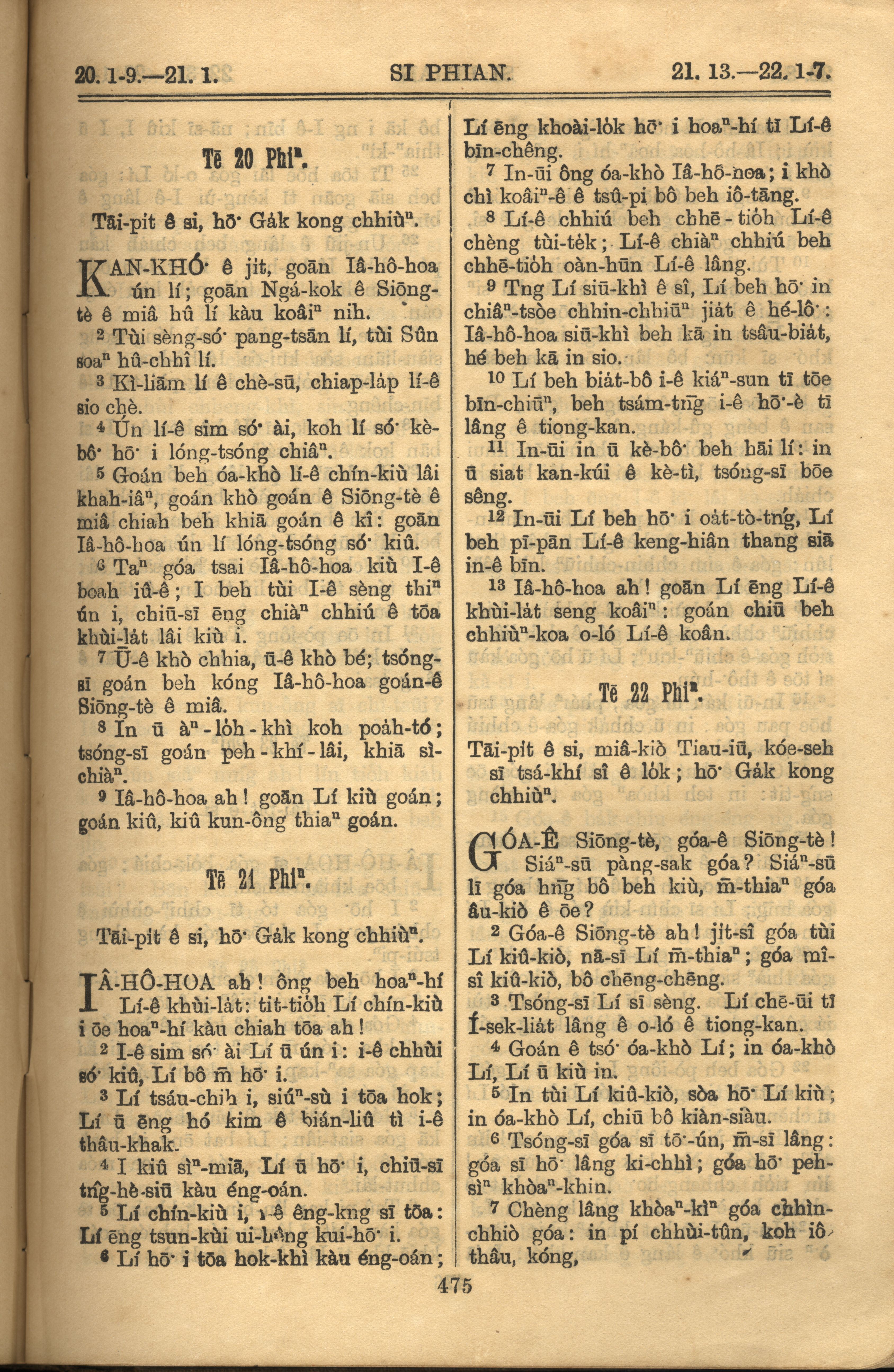 1921年罗马字旧约全书 诗篇 20 章 1 节到 22 章 7 节