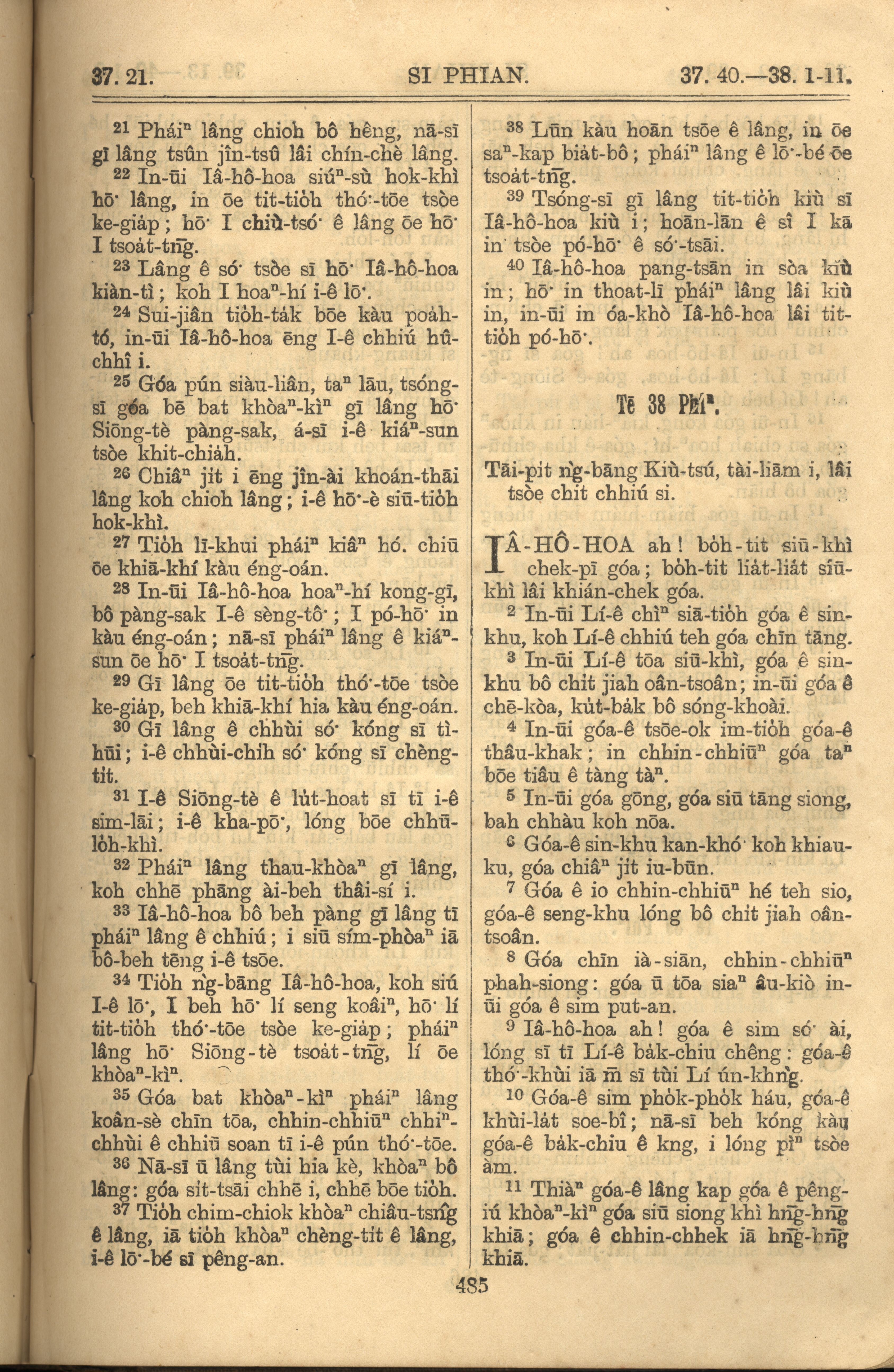 1921年罗马字旧约全书 诗篇 37 章 21 节到 38 章 11 节