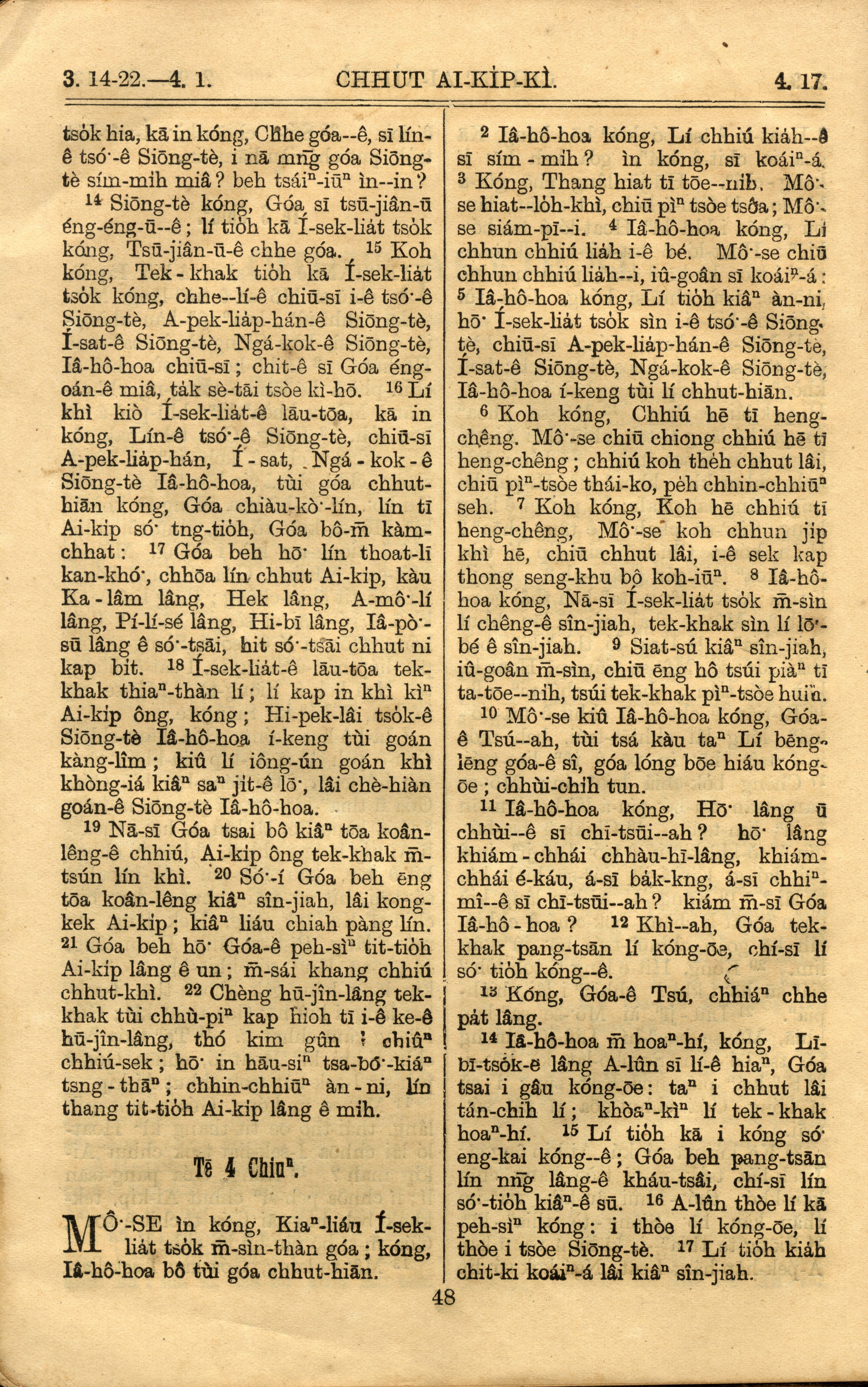 1921年罗马字旧约全书 出埃及记 3 章 14 节到 4 章 17 节