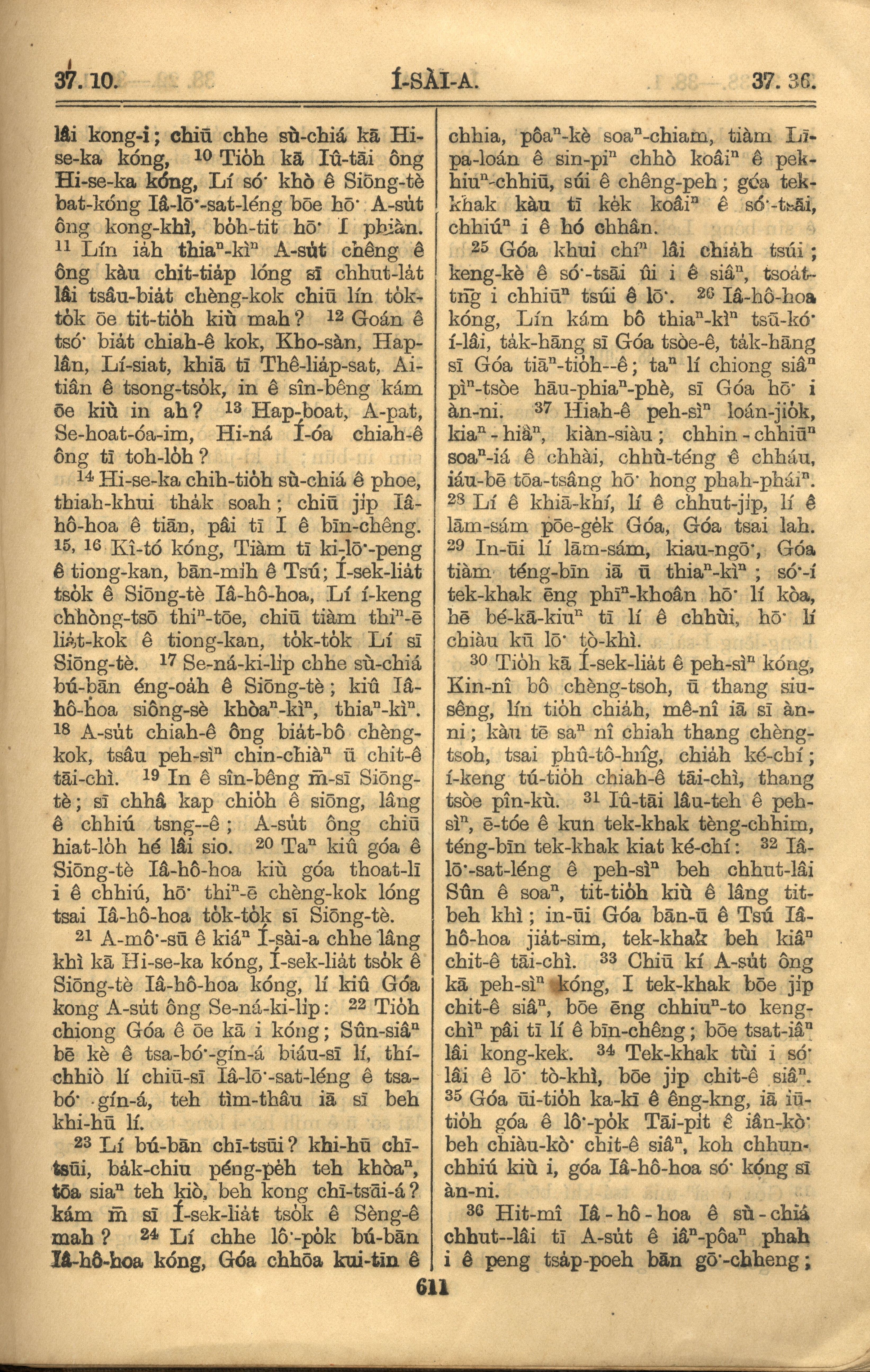 1921年罗马字旧约全书 以赛亚书 37 章 10 节到 37 章 36 节