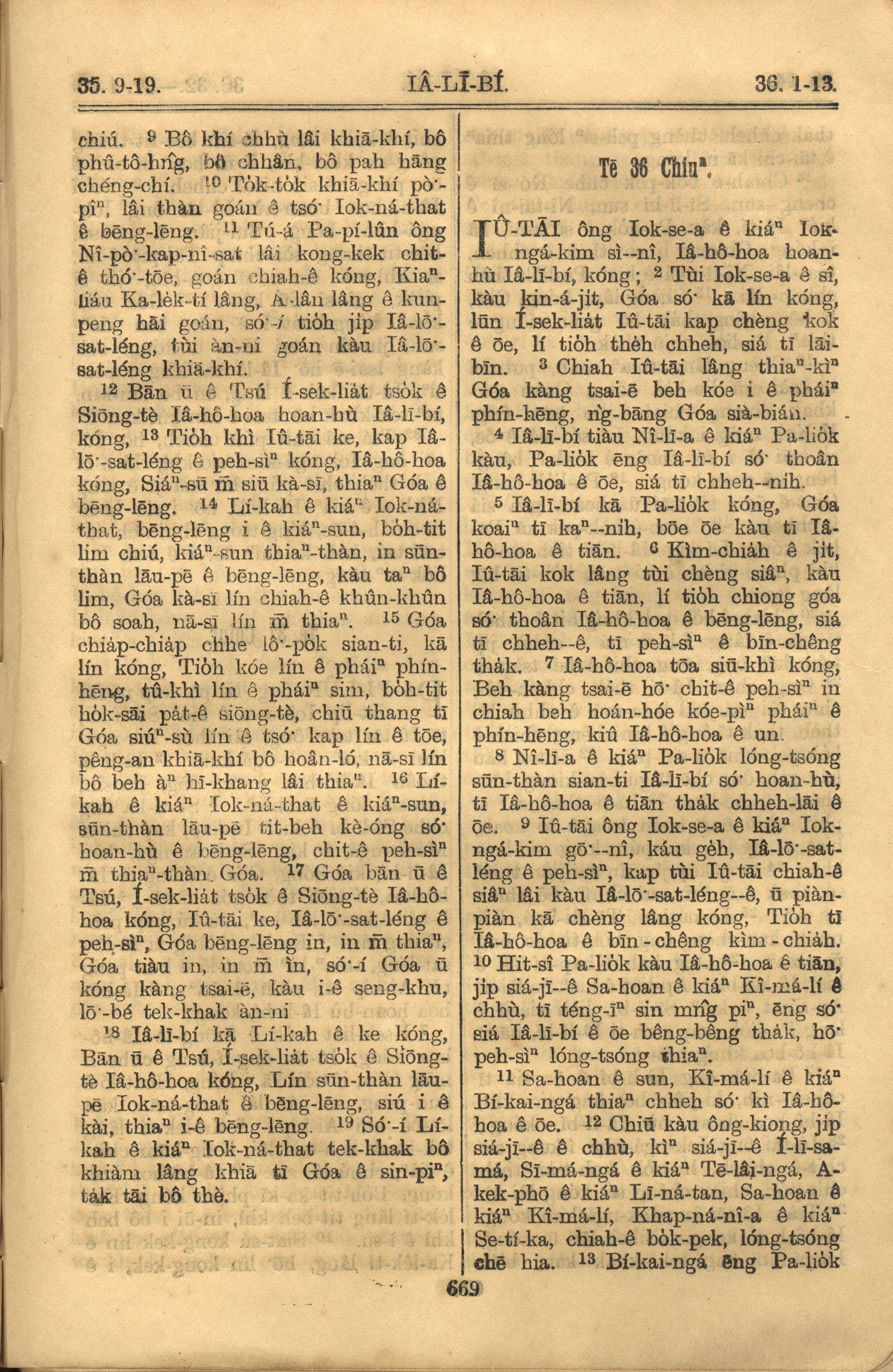 1921年罗马字旧约全书 耶利米书 35 章 9 节到 36 章 13 节