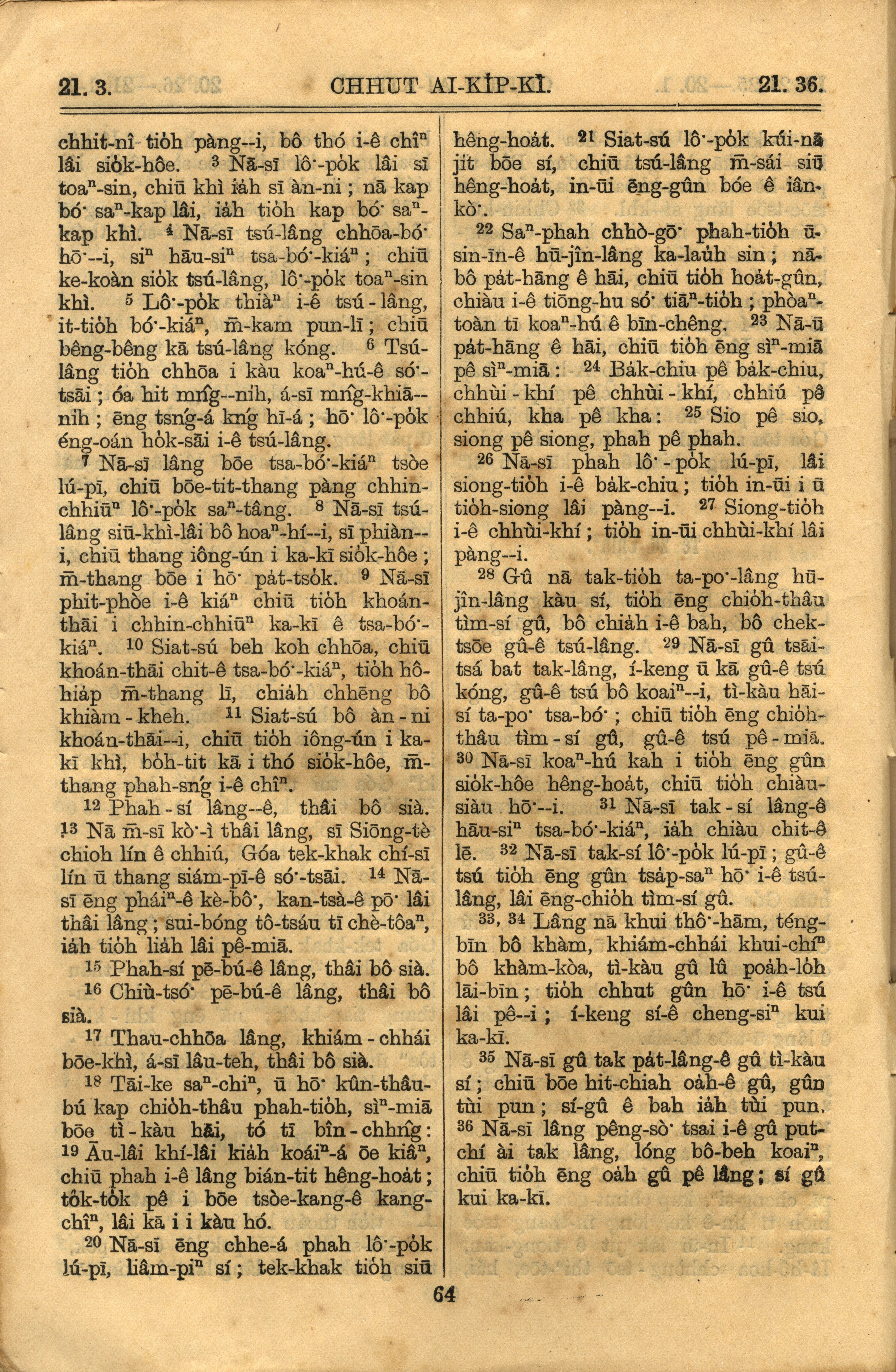 1921年罗马字旧约全书 出埃及记 21 章 3 节到 21 章 36 节