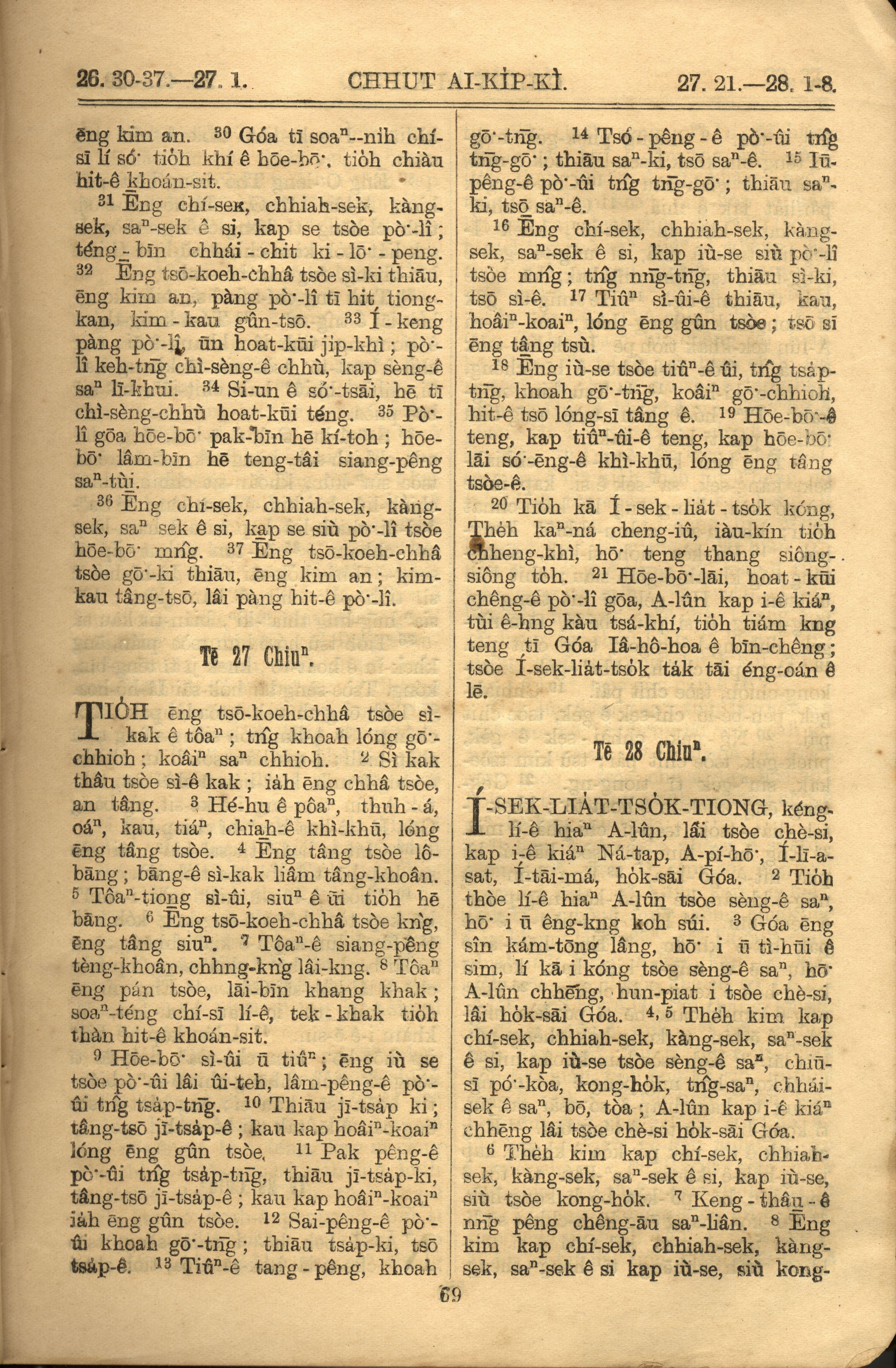 1921年罗马字旧约全书 出埃及记 26 章 30 节到 28 章 8 节