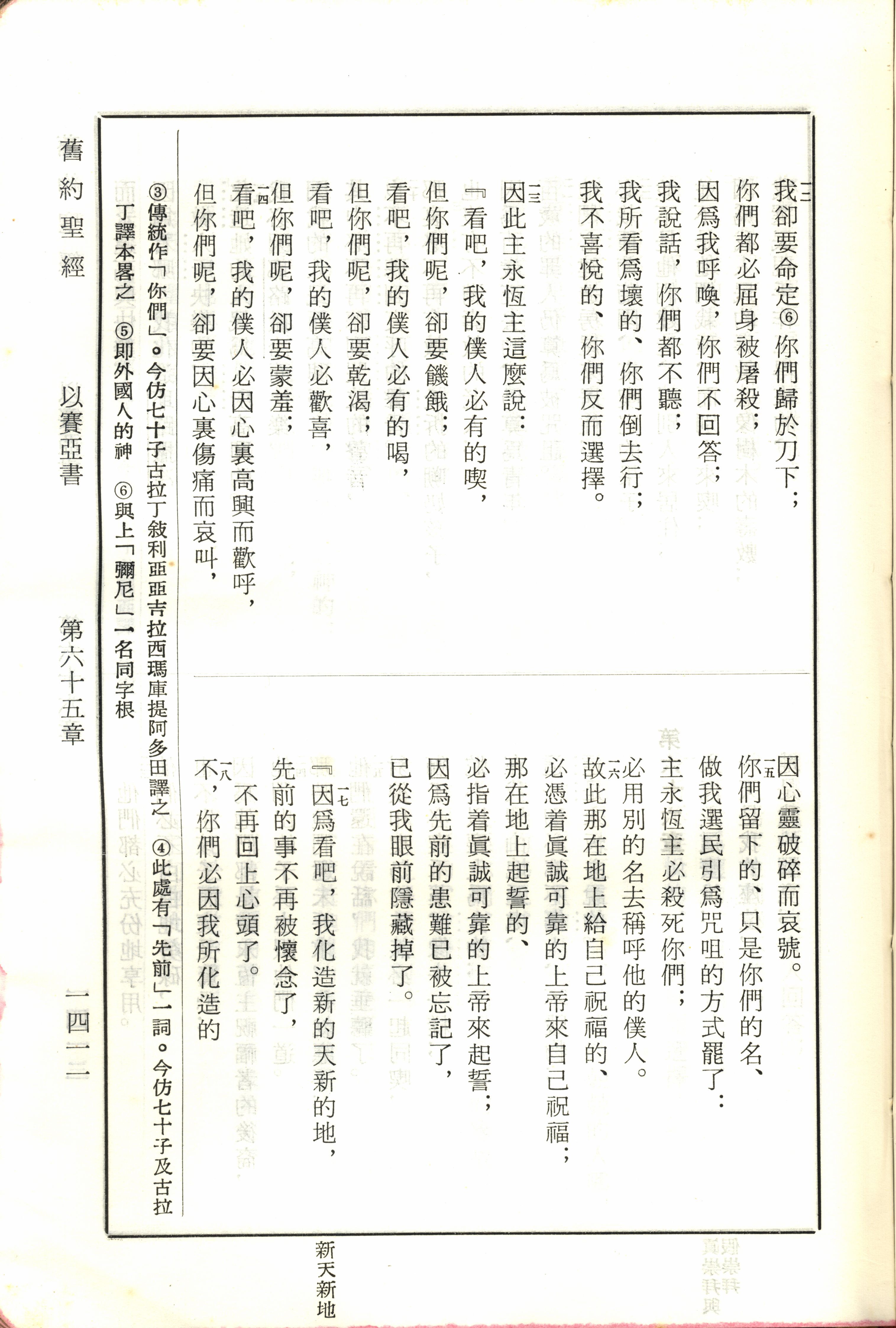 1970年新旧约全书(吕振中译本) 以赛亚书 65 章 12 节到 65 章 18 节