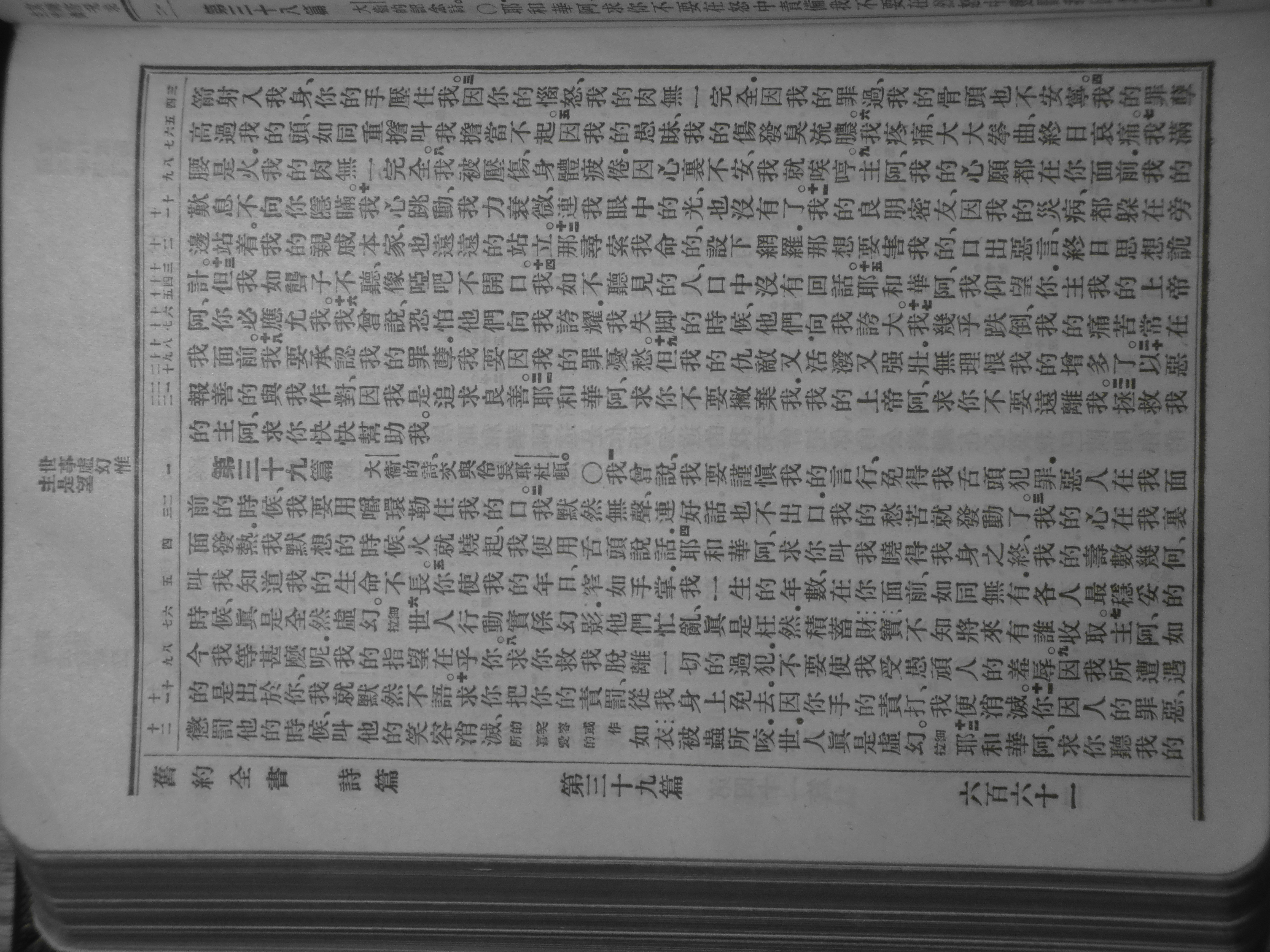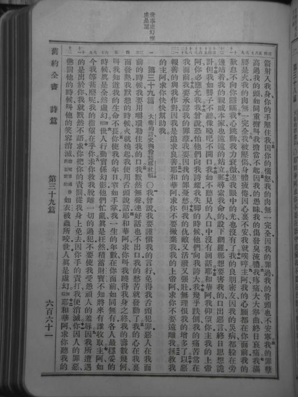 1919年官话和合本 诗篇 38 章 3 节到 39 章 12 节