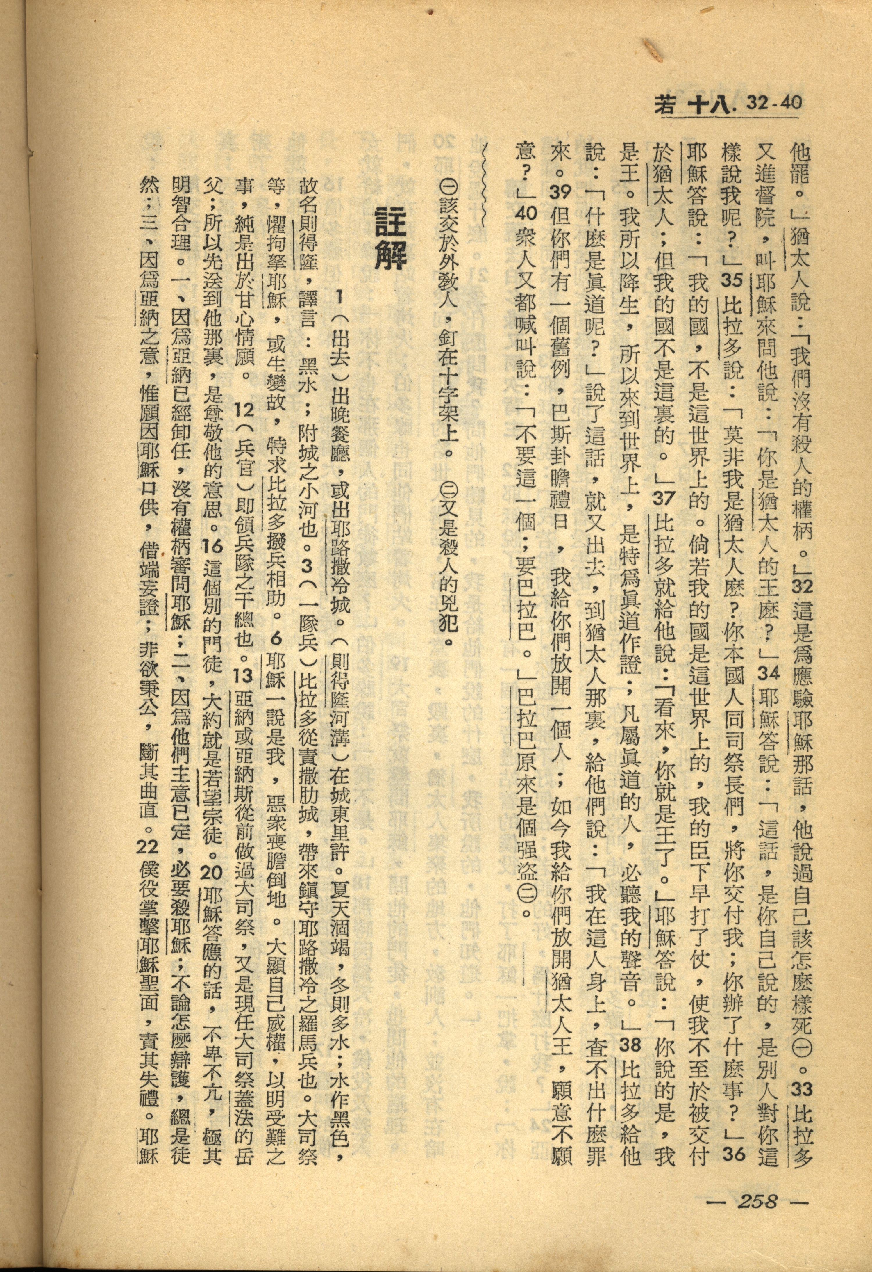 1956年新经全集 约翰福音 18 章 32 节到 18 章 40 节