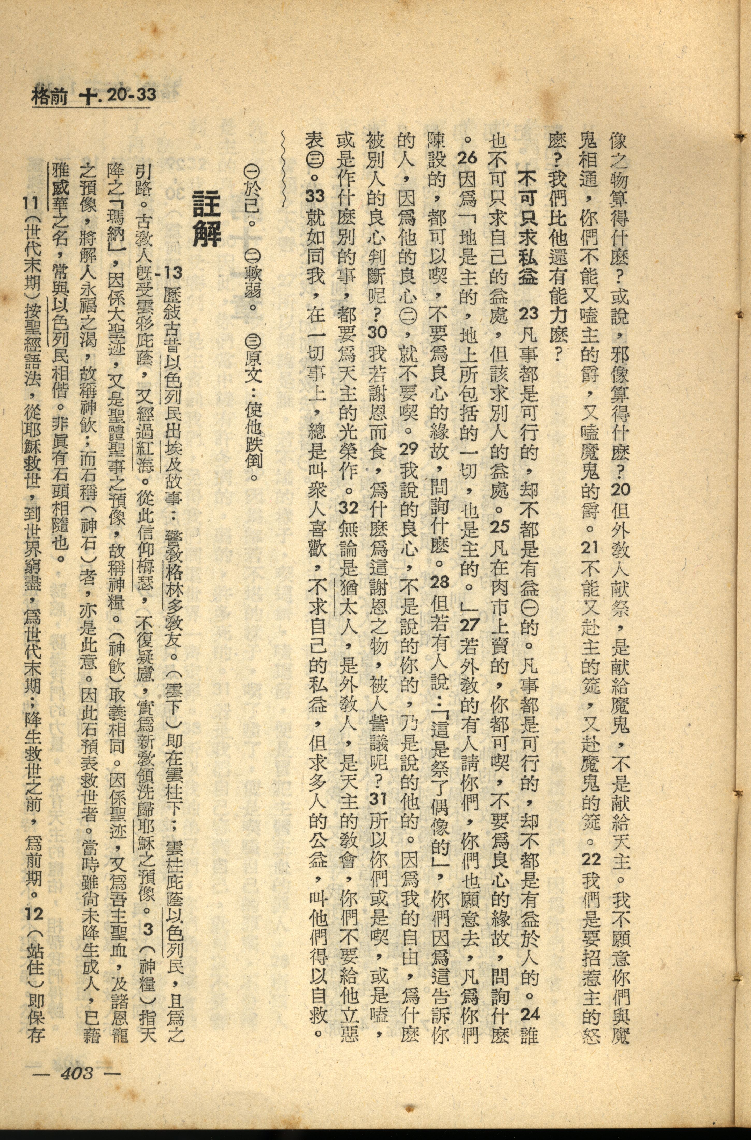 1956年新经全集 哥林多前书 10 章 20 节到 10 章 33 节