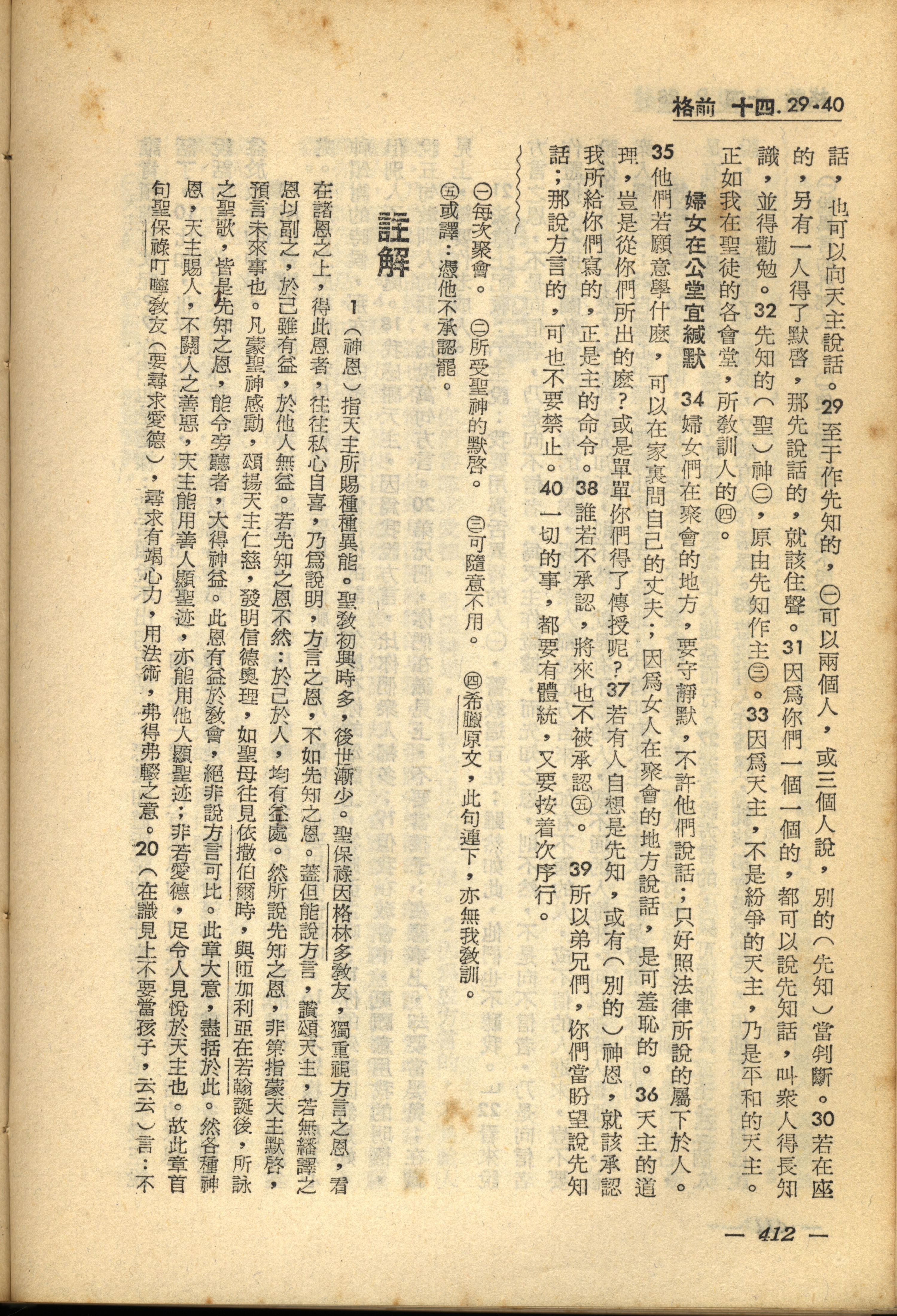 1956年新经全集 哥林多前书 14 章 29 节到 14 章 40 节