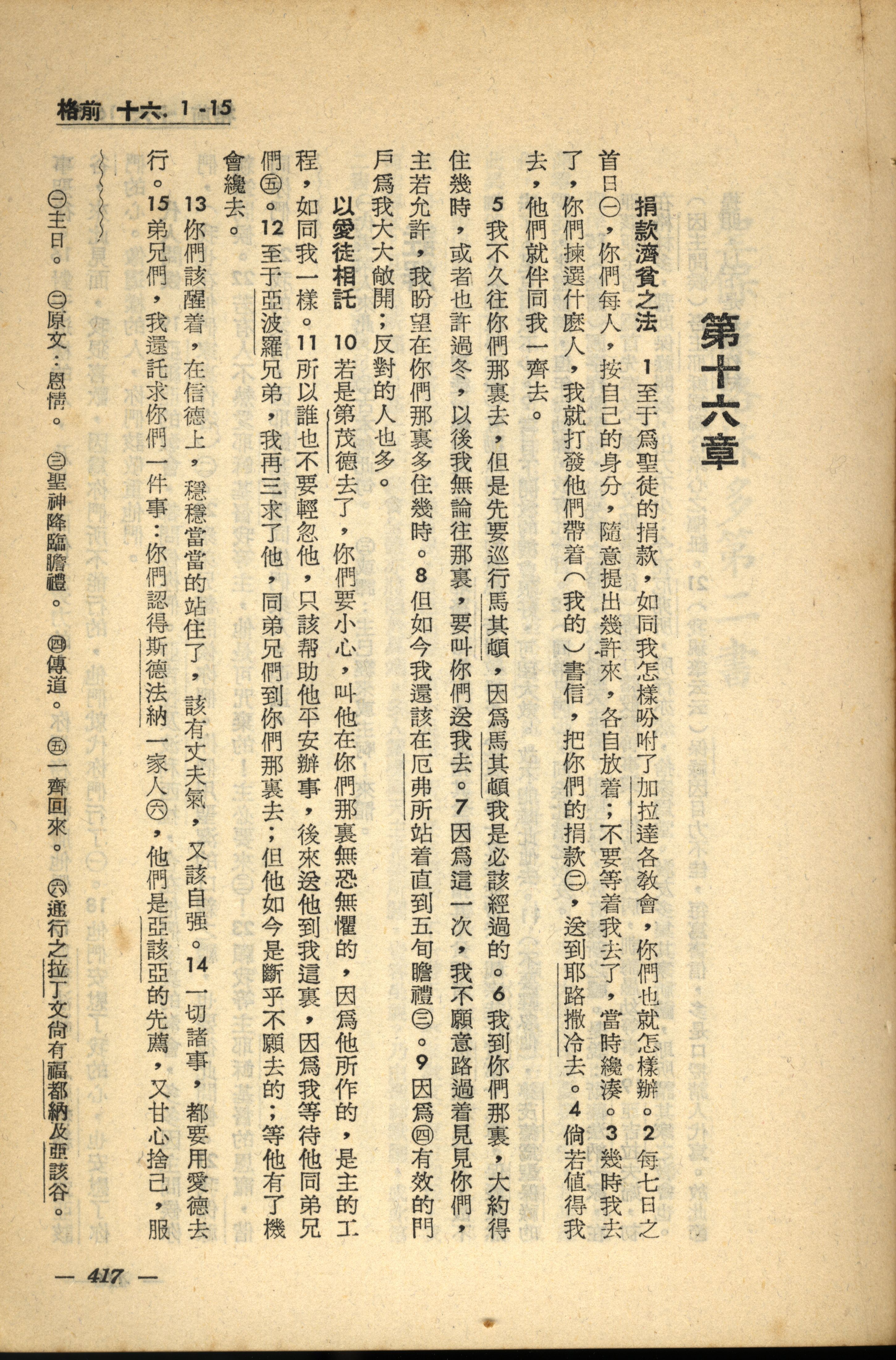 1956年新经全集 哥林多前书 16 章 1 节到 16 章 15 节
