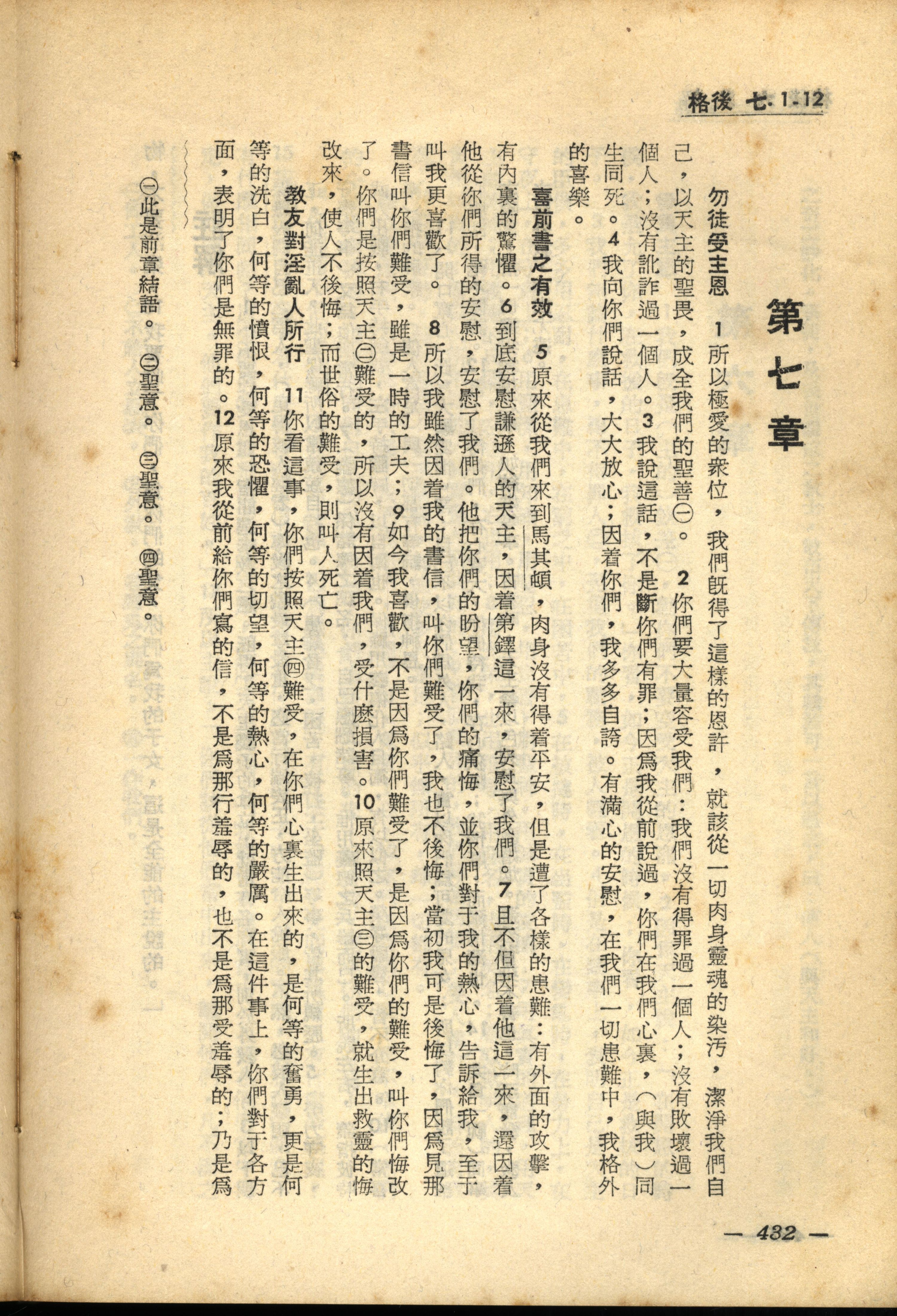 1956年新经全集 哥林多后书 7 章 1 节到 7 章 12 节