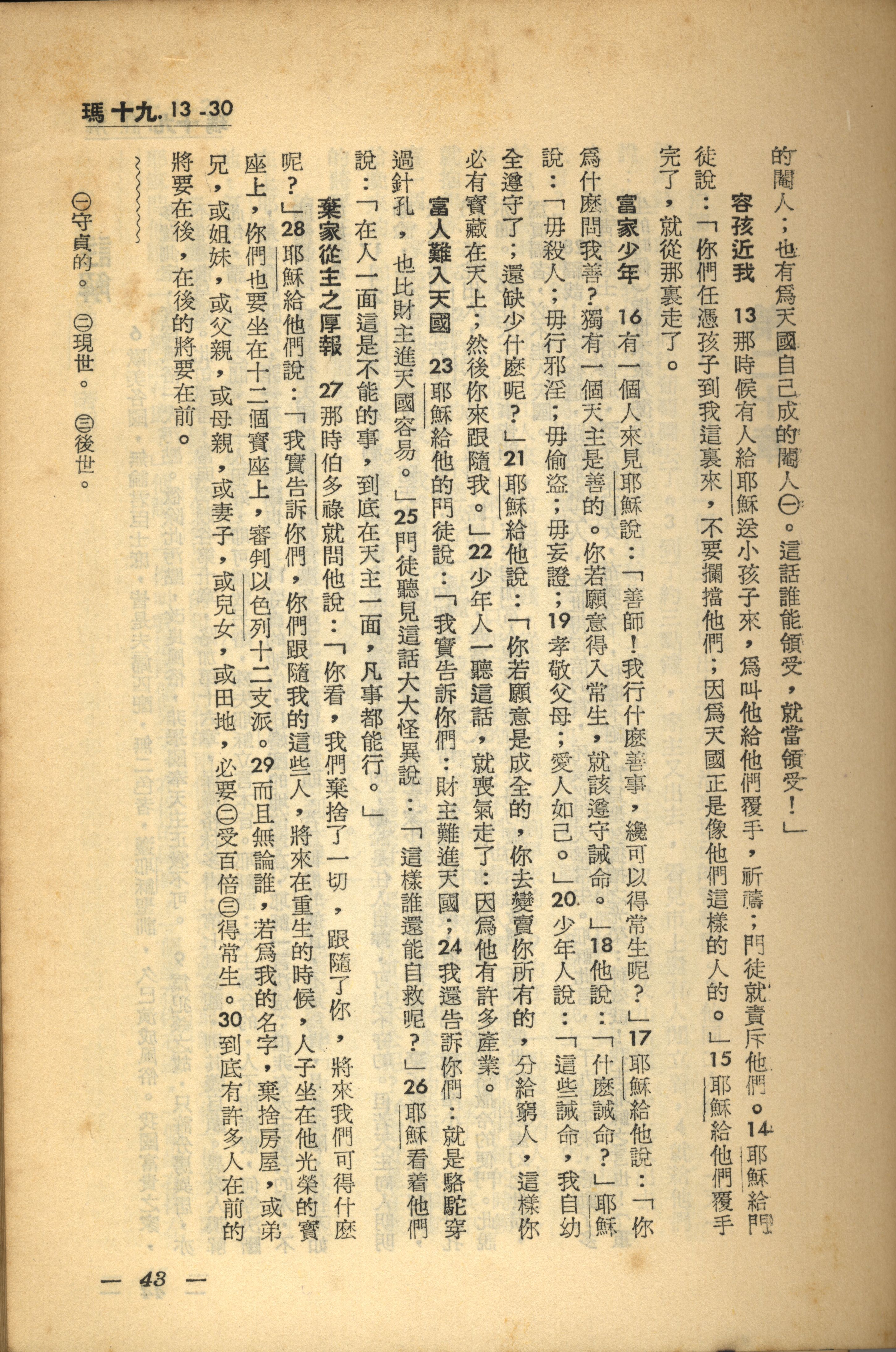 1956年新经全集 马太福音 19 章 13 节到 19 章 30 节
