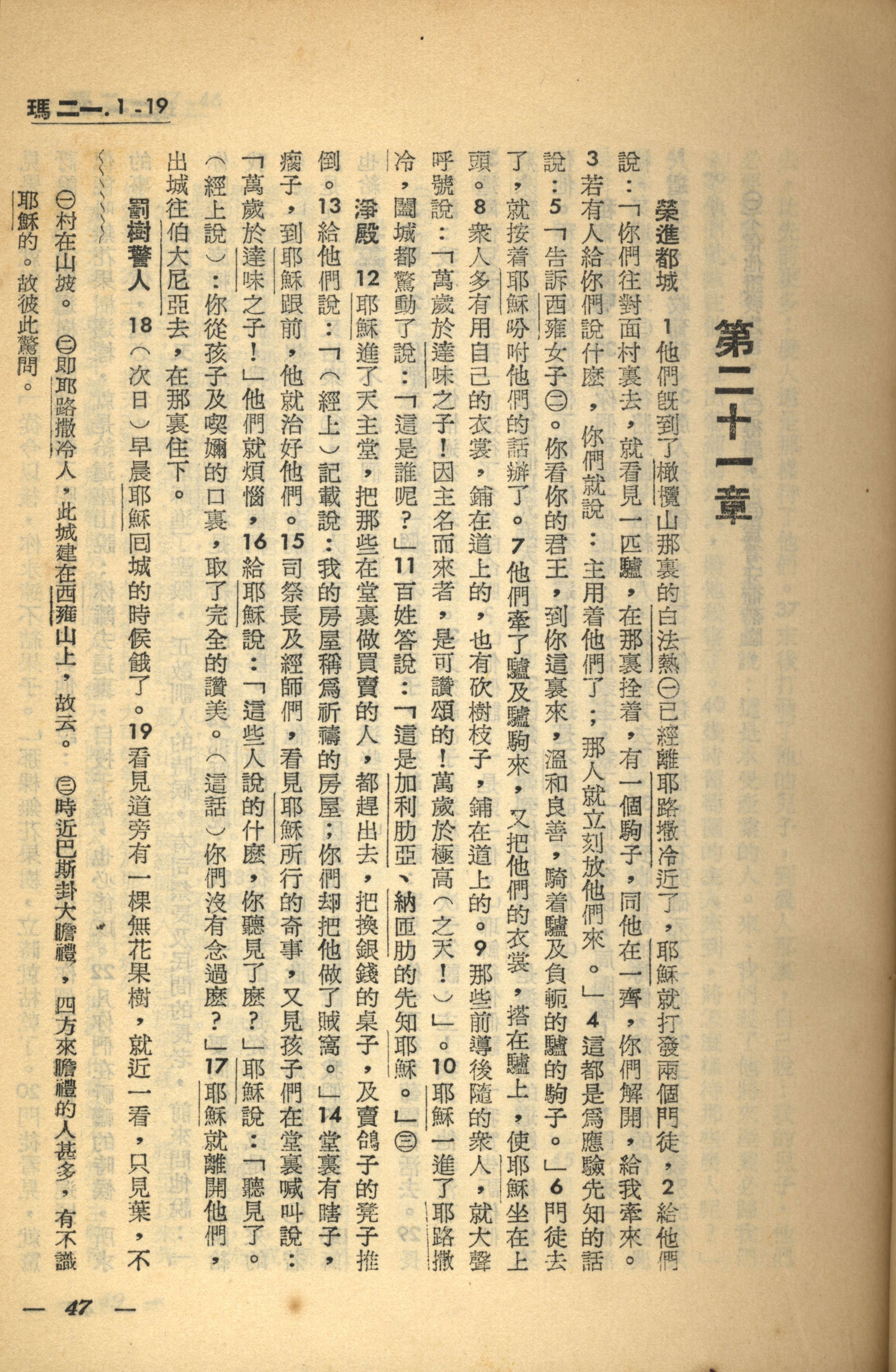 1956年新经全集 马太福音 21 章 1 节到 21 章 19 节