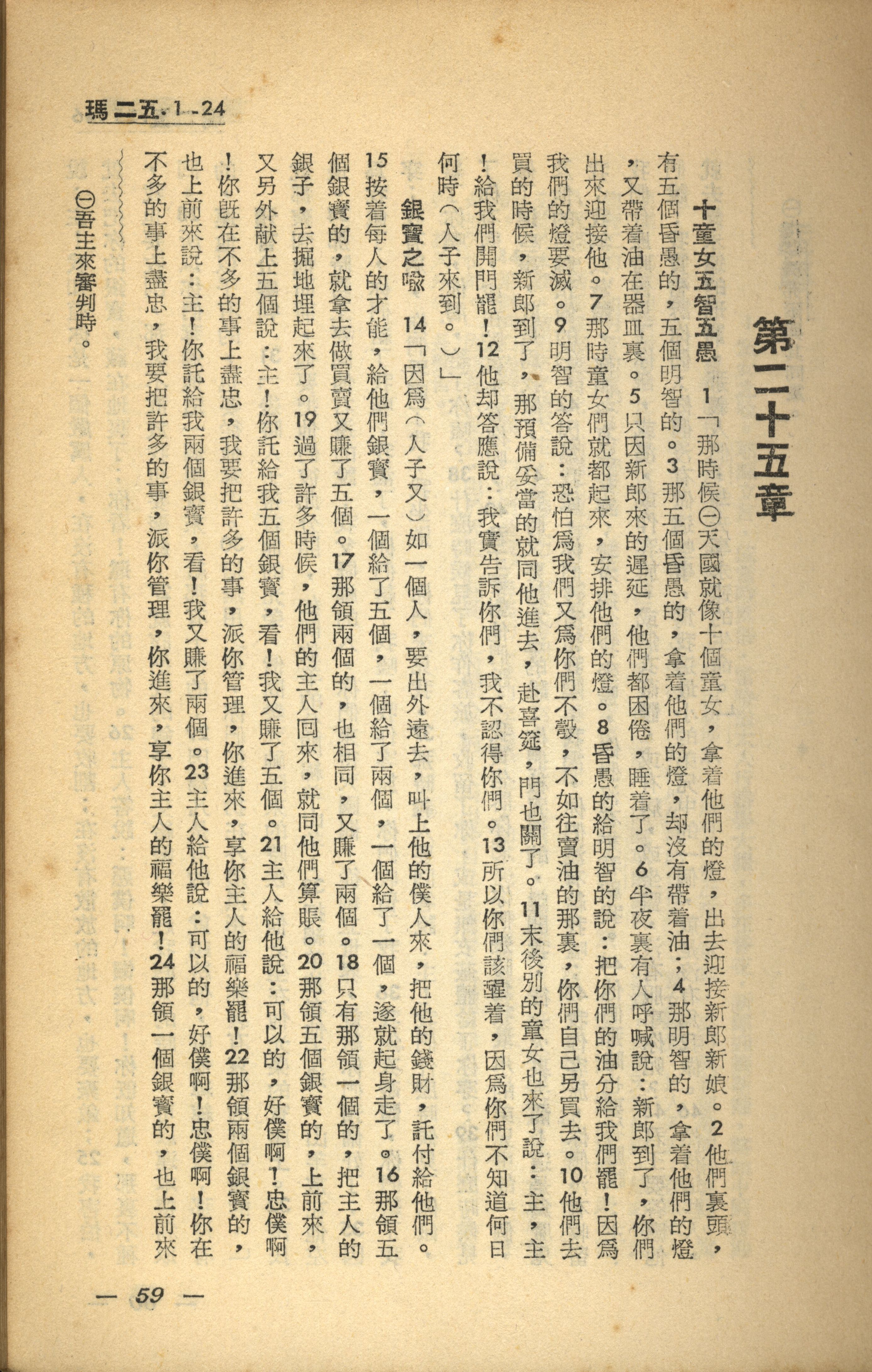 1956年新经全集 马太福音 25 章 1 节到 25 章 24 节