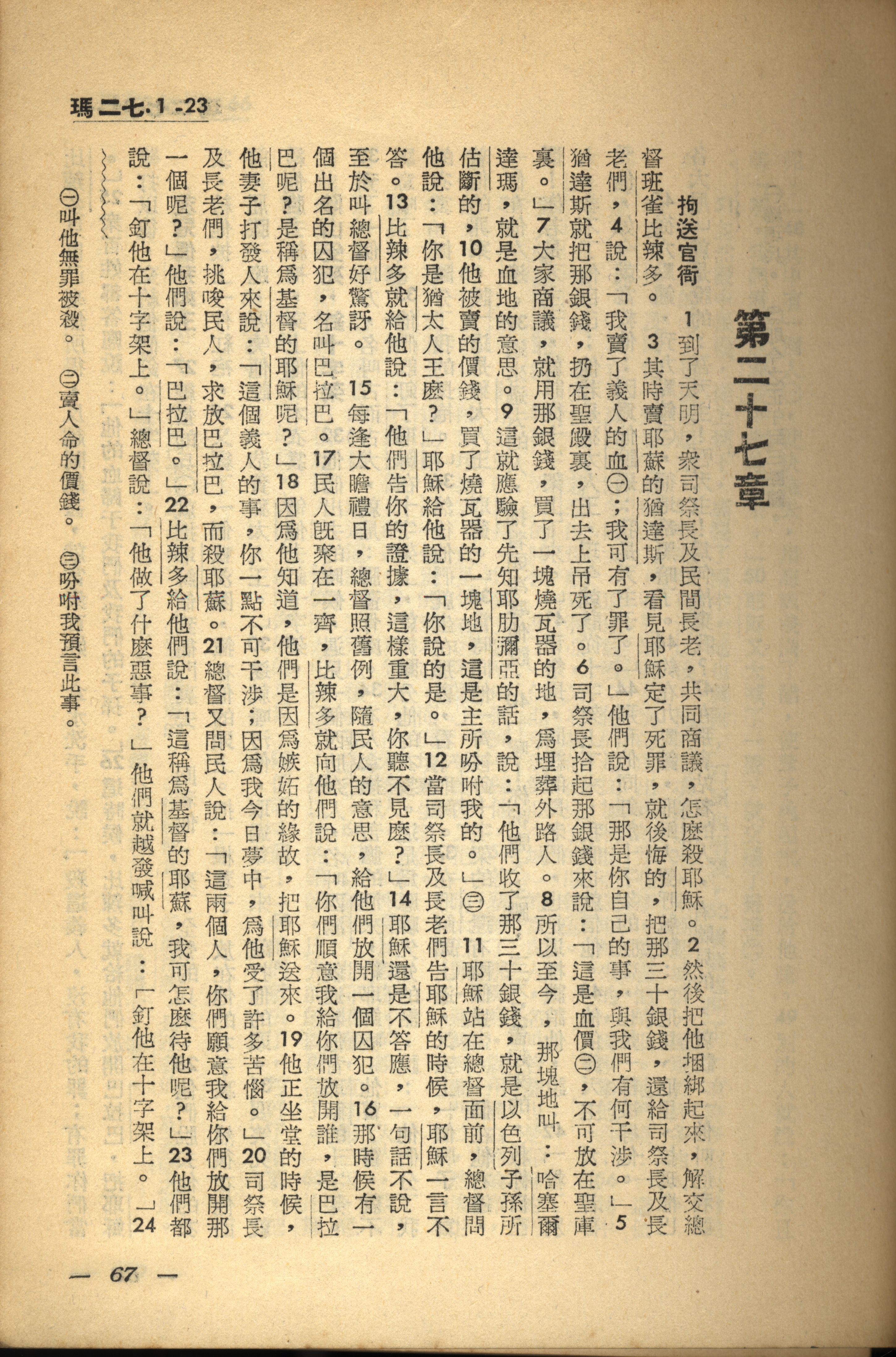 1956年新经全集 马太福音 27 章 1 节到 27 章 23 节
