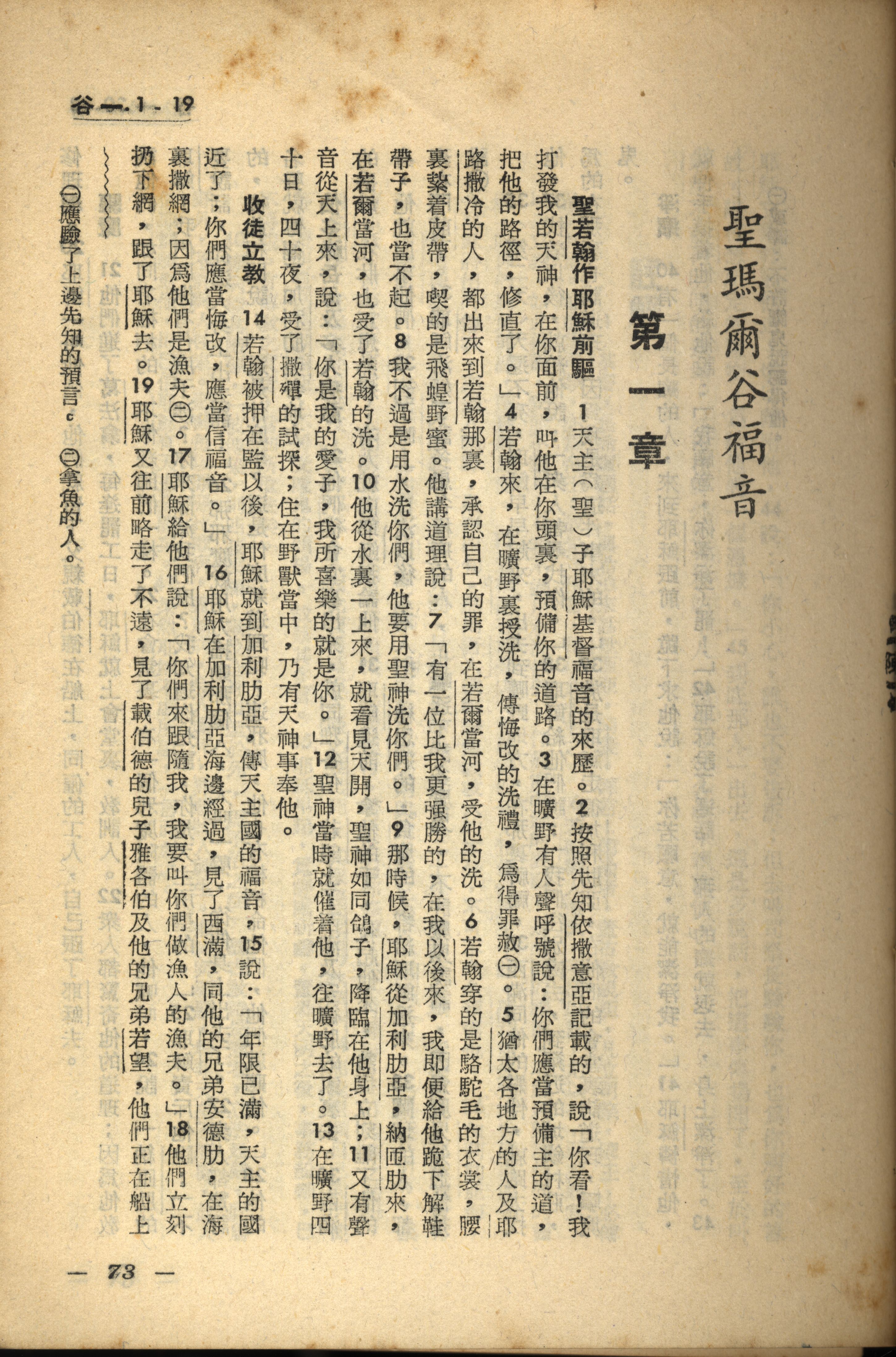 1956年新经全集 马可福音 1 章 1 节到 1 章 19 节