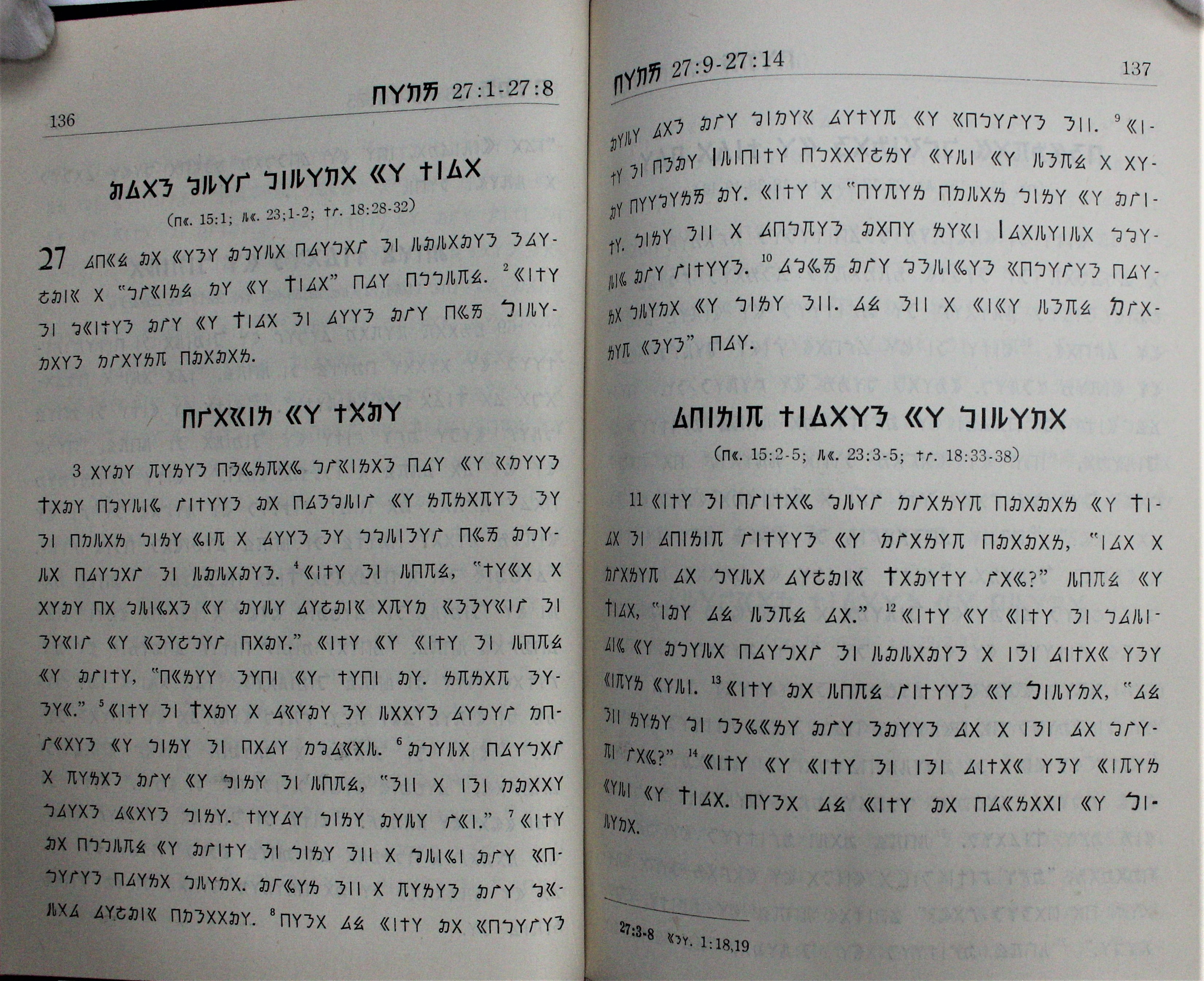 1963年太鲁阁语新约全书 马太福音 27 章 1 节到 27 章 14 节