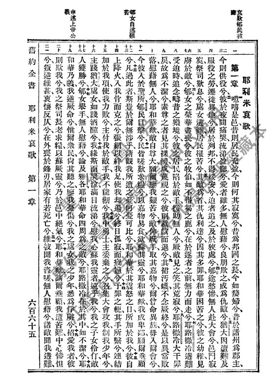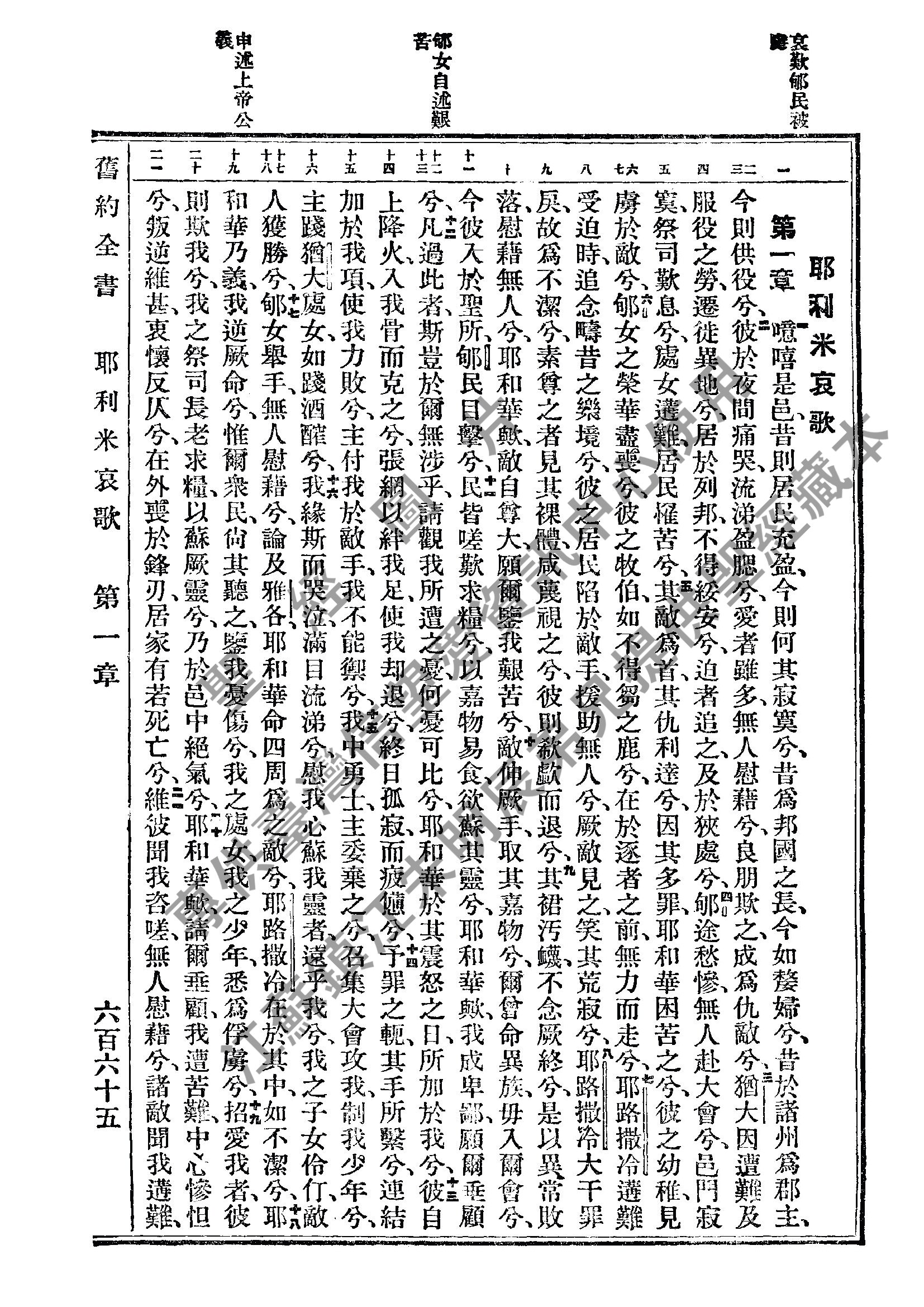 1934年新旧约全书(文理和合本) 耶利米哀歌 1 章 到 1 章