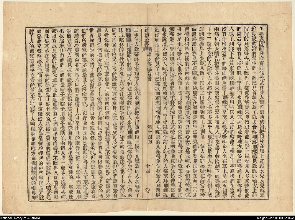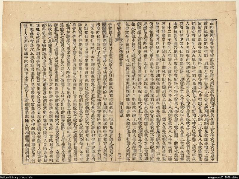 1856年新約四福音使徒行傳(南京官話譯本) 馬太福音 14 章 10 節到 15 章 22 節