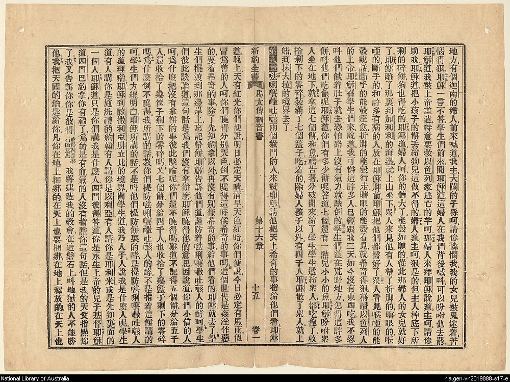 1856年新約四福音使徒行傳(南京官話譯本) 馬太福音 15 章 23 節到 16 章 19 節