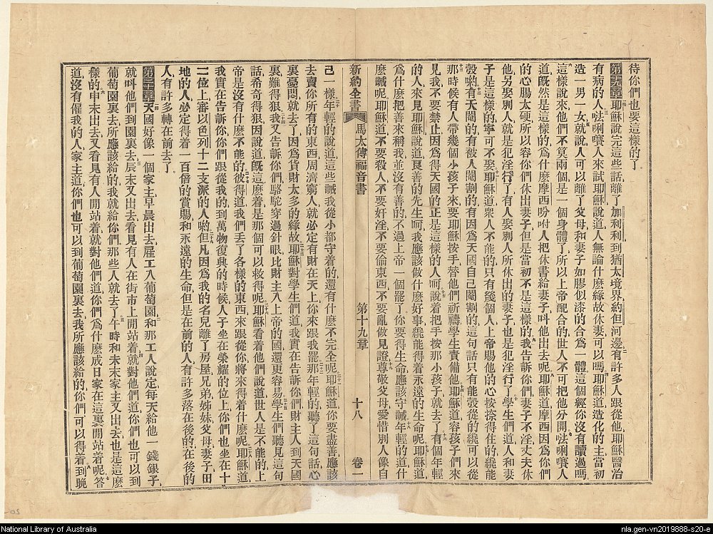 1856年新約四福音使徒行傳(南京官話譯本) 馬太福音 19 章 1 節到 20 章 8 節