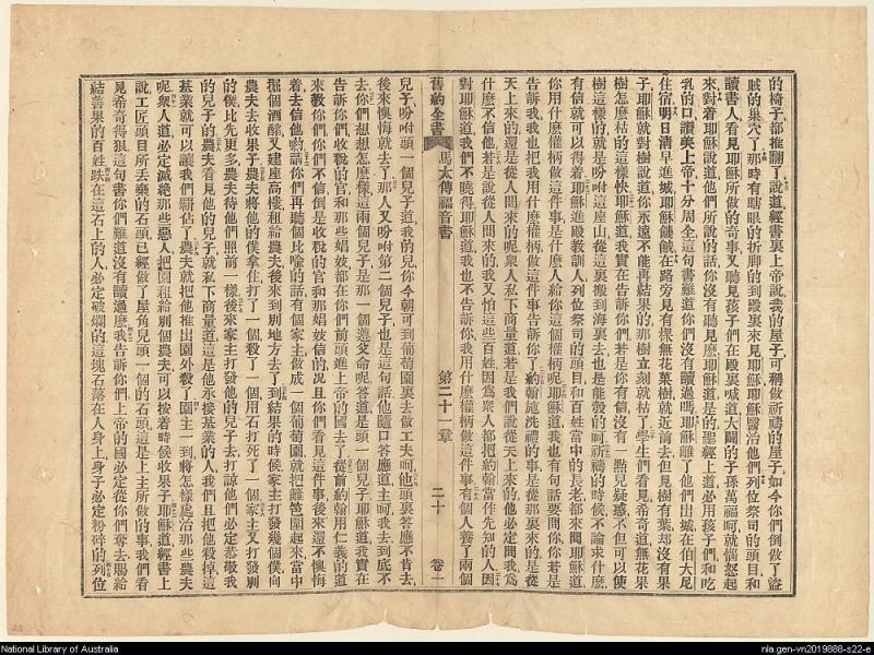 1856年新約四福音使徒行傳(南京官話譯本) 馬太福音 21 章 13 節到 21 章 45 節