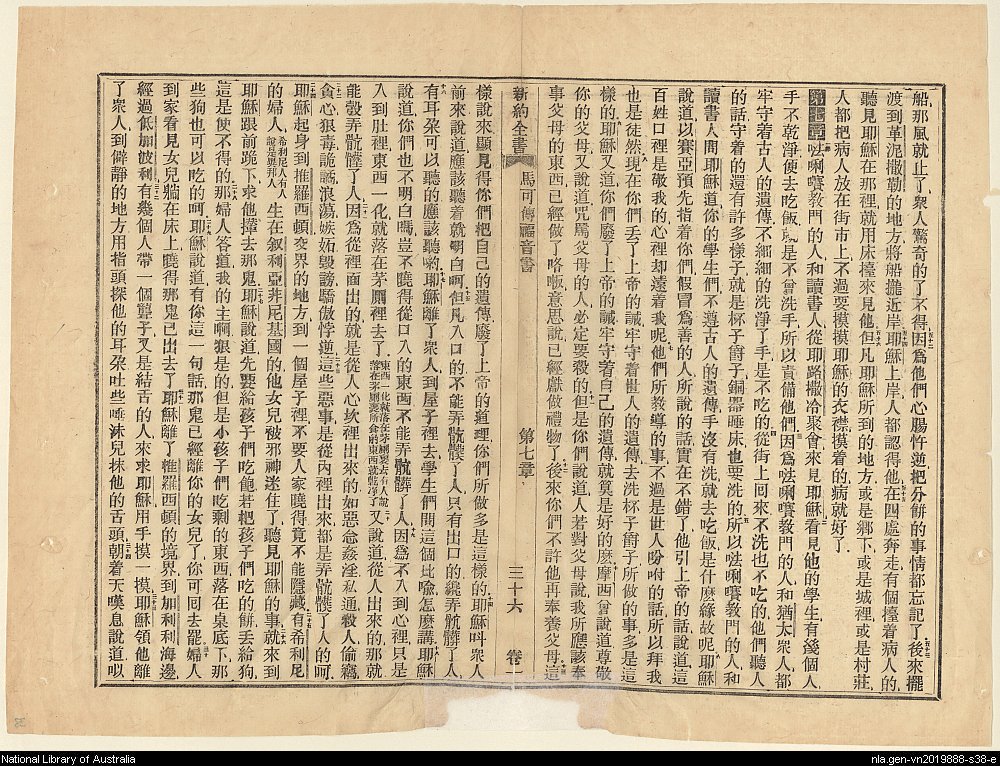 1856年新約四福音使徒行傳(南京官話譯本) 馬可福音 6 章 52 節到 7 章 34 節