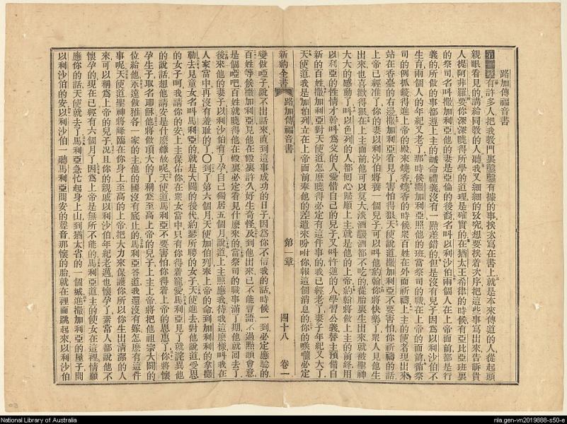 1856年新約四福音使徒行傳(南京官話譯本) 路加福音 1 章 1 節到 1 章 41 節