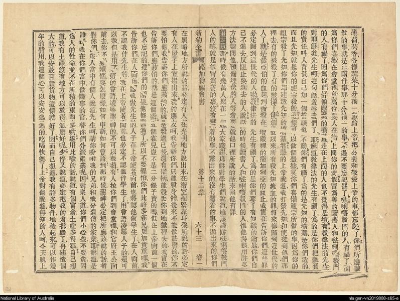1856年新約四福音使徒行傳(南京官話譯本) 路加福音 11 章 42 節到 12 章 20 節