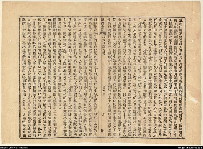1856年新約四福音使徒行傳(南京官話譯本) 馬太福音 8 章 5 節到 9 章 9 節