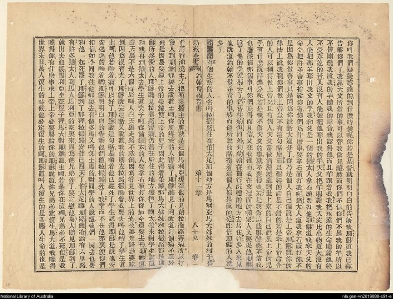 1856年新約四福音使徒行傳(南京官話譯本) 約翰福音 10 章 25 節到 11 章 25 節