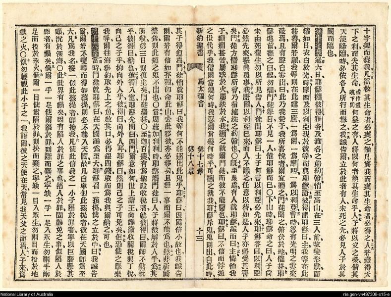 1898年新約全書 馬太福音 16 章 25 節到 18 章 11 節