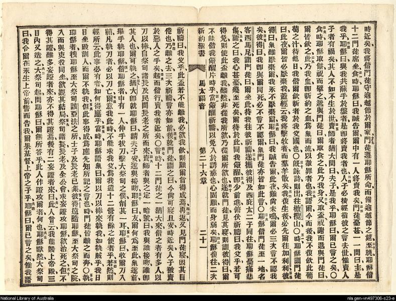 1898年新約全書 馬太福音 26 章 19 節到 26 章 64 節