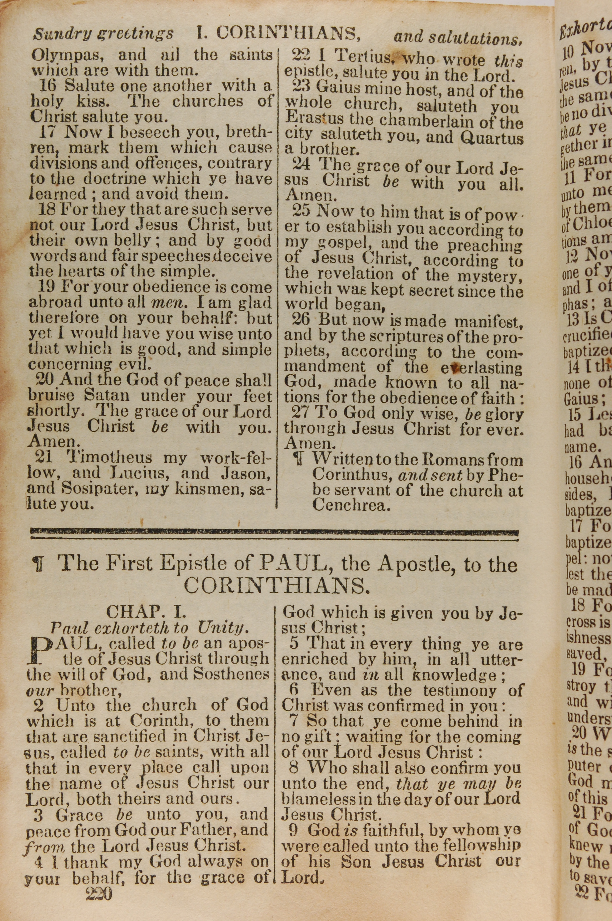 1843年The New Testament 哥林多前書 1 章 1 節到 1 章 9 節