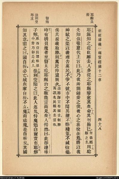 1907年新約四福音(新經譯義) 馬太福音 12 章 15 節到 12 章 26 節