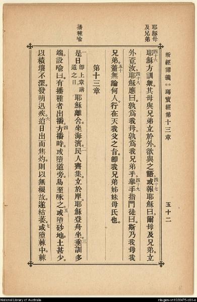 1907年新約四福音(新經譯義) 馬太福音 12 章 46 節到 13 章 7 節