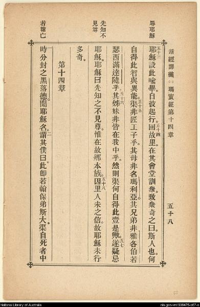 1907年新約四福音(新經譯義) 馬太福音 13 章 53 節到 14 章 2 節