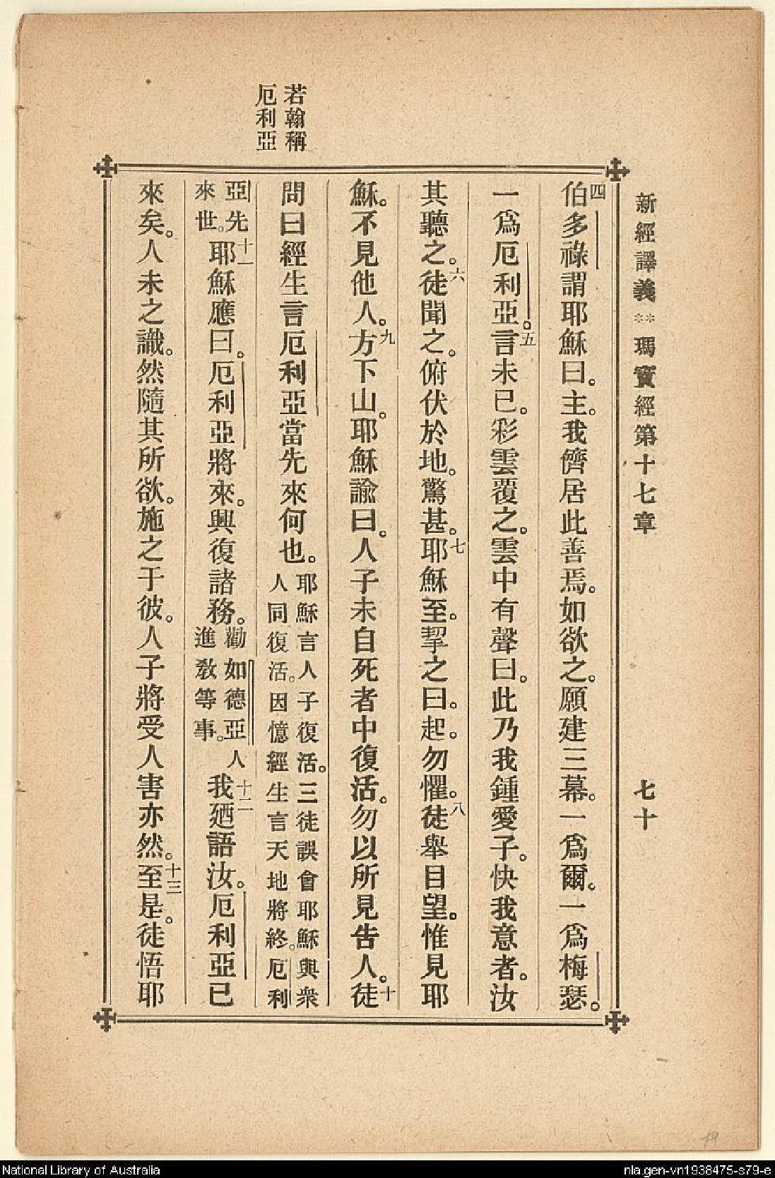 1907年新約四福音(新經譯義) 馬太福音 17 章 4 節到 17 章 13 節