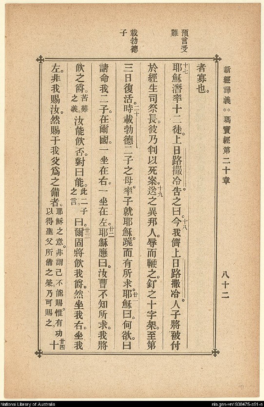 1907年新約四福音(新經譯義) 馬太福音 20 章 17 節到 20 章 24 節