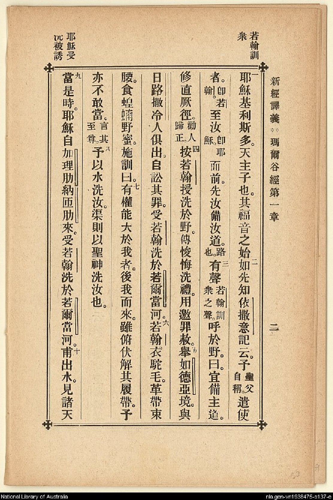 1907年新約四福音(新經譯義) 馬可福音 1 章 1 節到 1 章 10 節