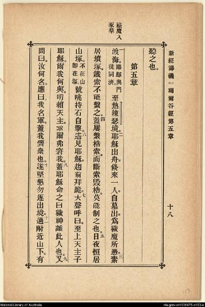 1907年新約四福音(新經譯義) 馬可福音 4 章 4 節到 5 章 11 節