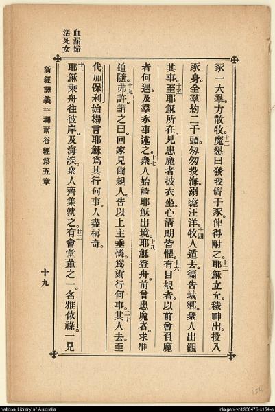 1907年新約四福音(新經譯義) 馬可福音 5 章 11 節到 5 章 22 節