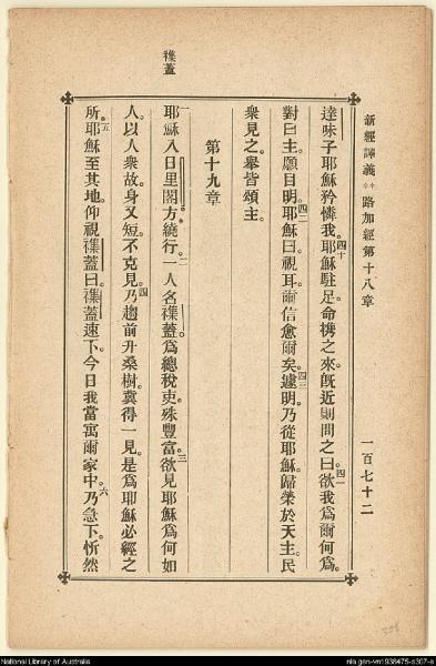 1907年新約四福音(新經譯義) 路加福音 18 章 39 節到 19 章 6 節
