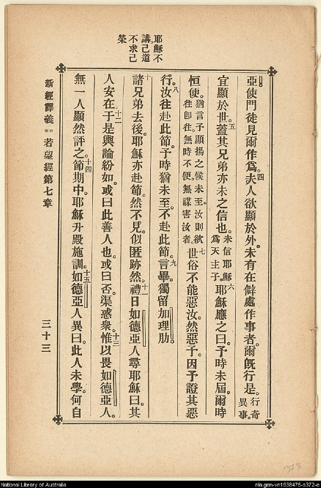 1907年新約四福音(新經譯義) 約翰福音 7 章 3 節到 7 章 15 節